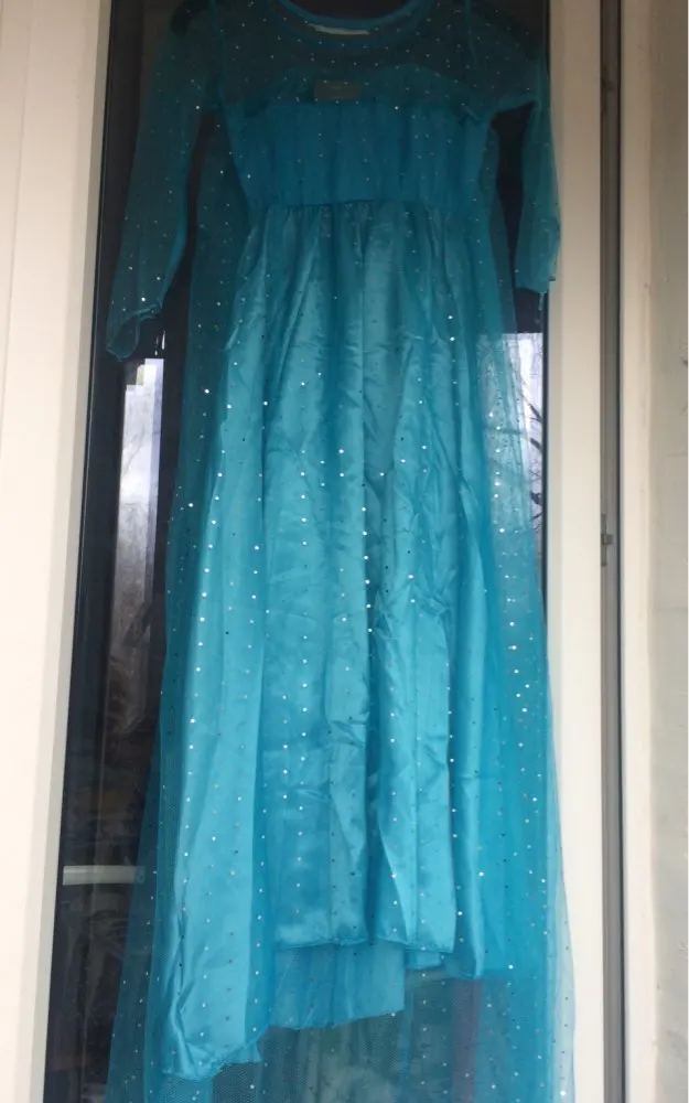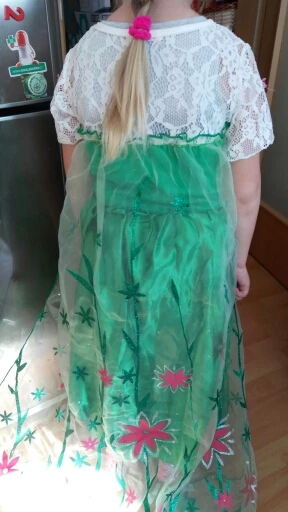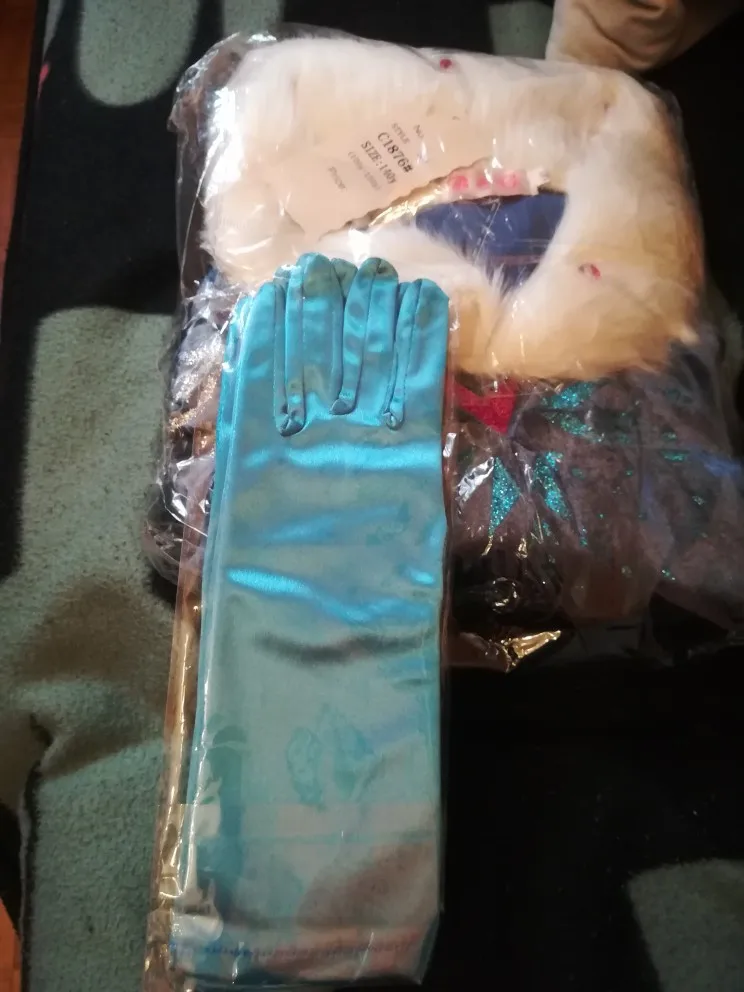 Like very good material dress same as description only the gloves is that came damaged with ink and are very tight. The shipping was super, super fast 10 days. I am very glad