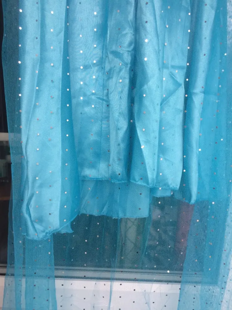 The dress is spectacular! The layer is shiny chiffon with silver glitter finish and the v body is tid is very soft velvet the quality is very good enchanted with the super recommended store it takes like 3 weeks to arrive in Spain less of what peraba is. Very happy with the purchase.