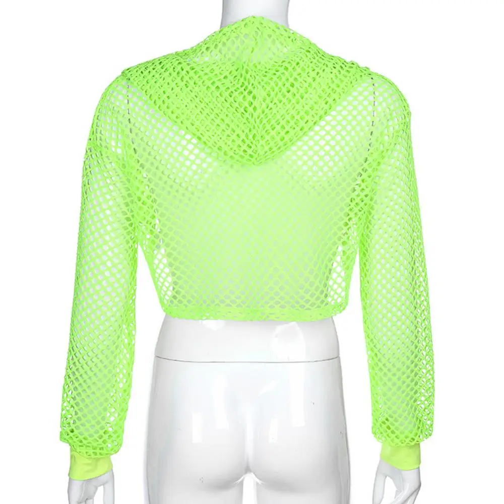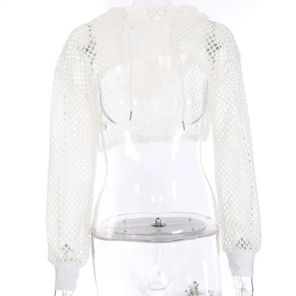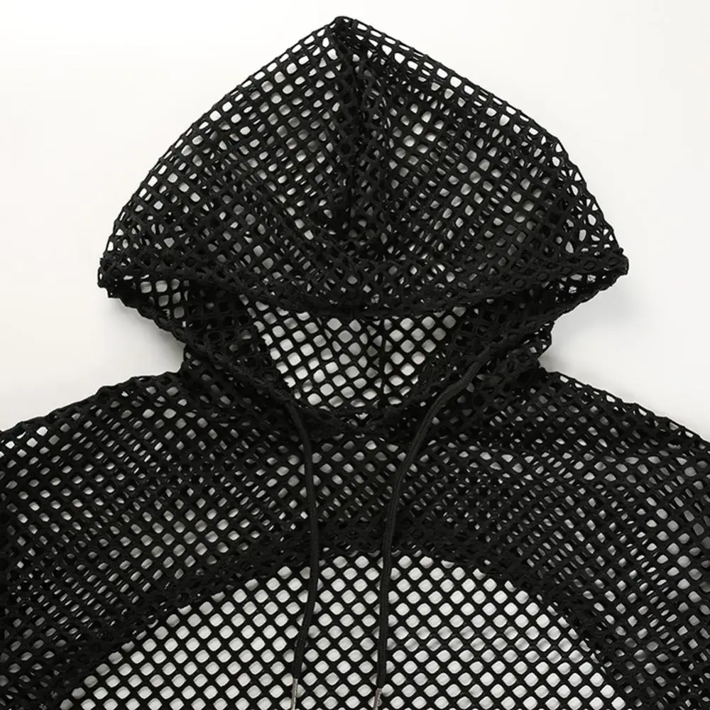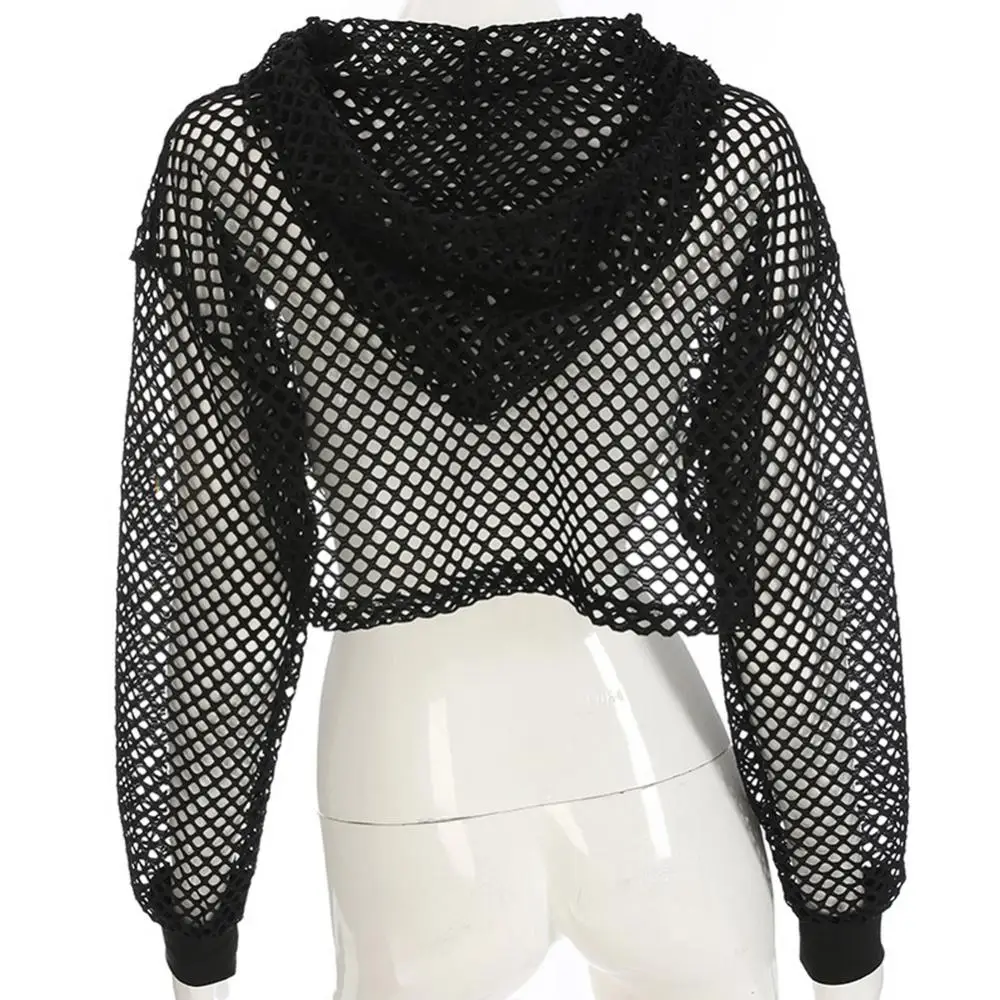 FREE SHIPPING Fishnet Mesh Hoodie Crop Top Gothic Streetwear Y2K OUT1067