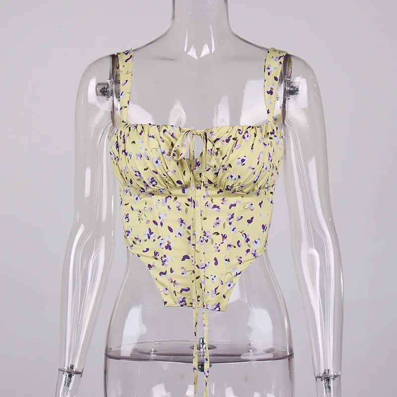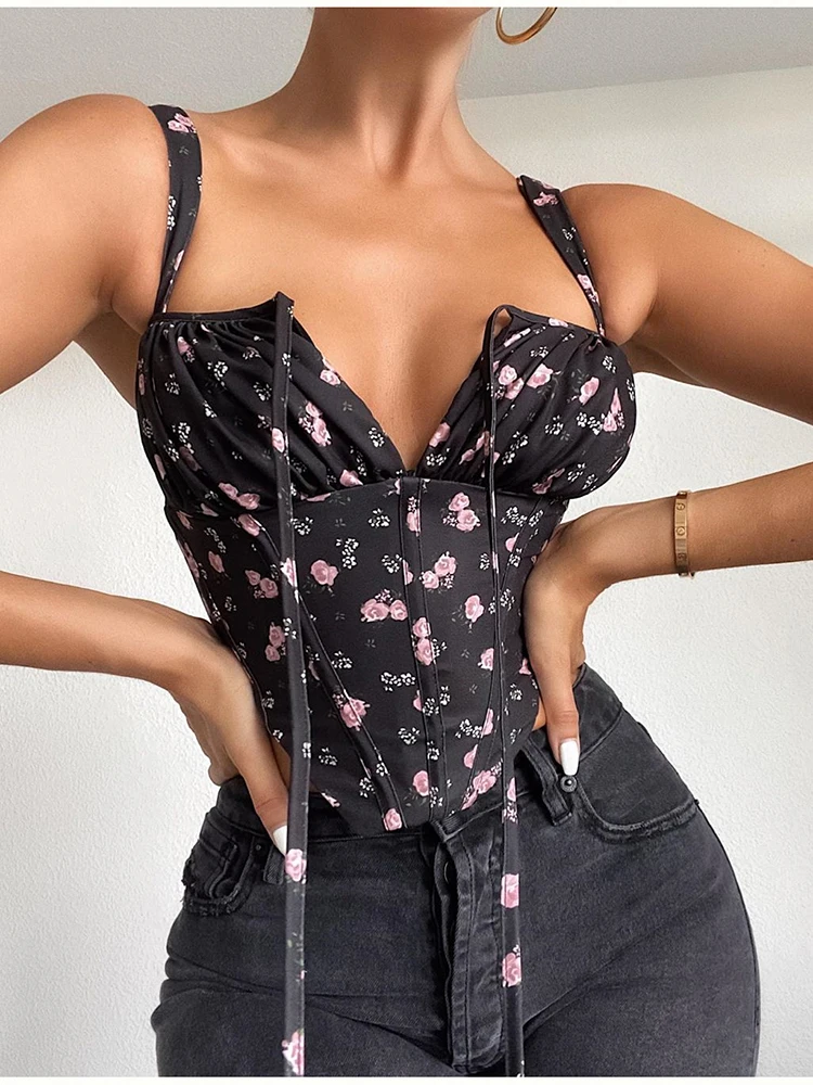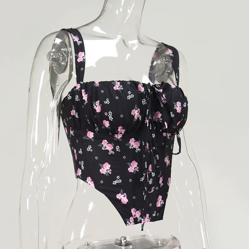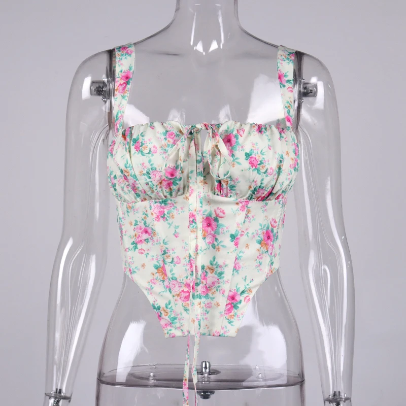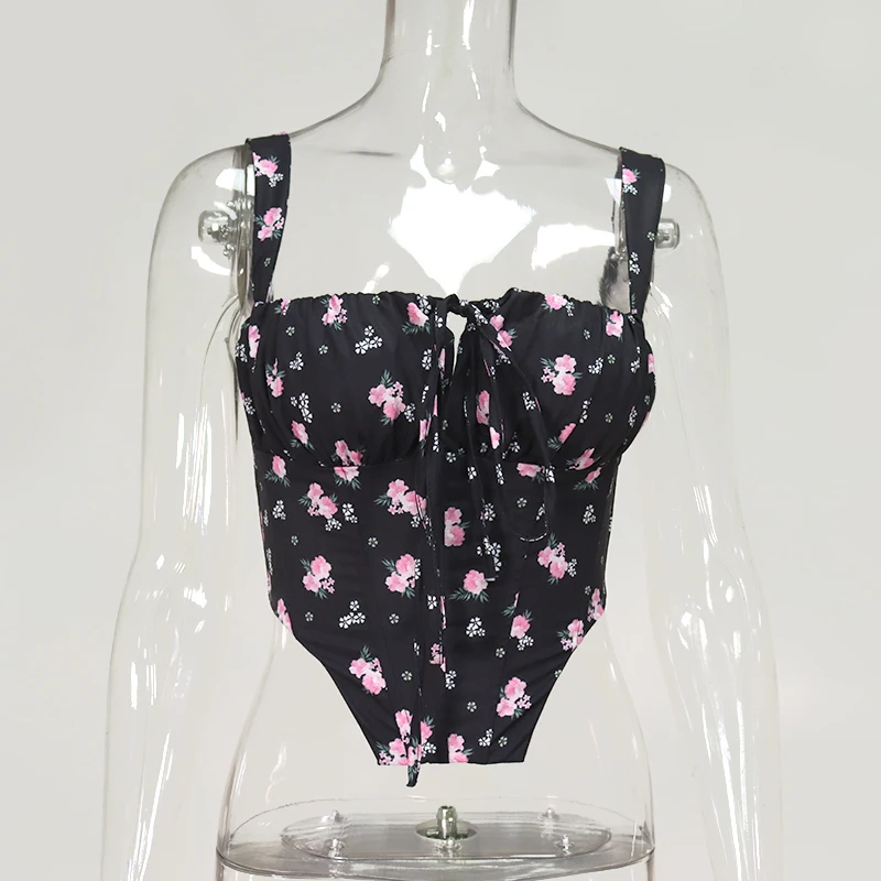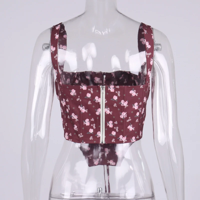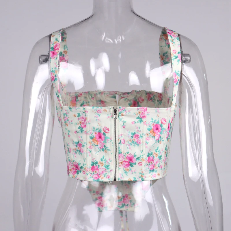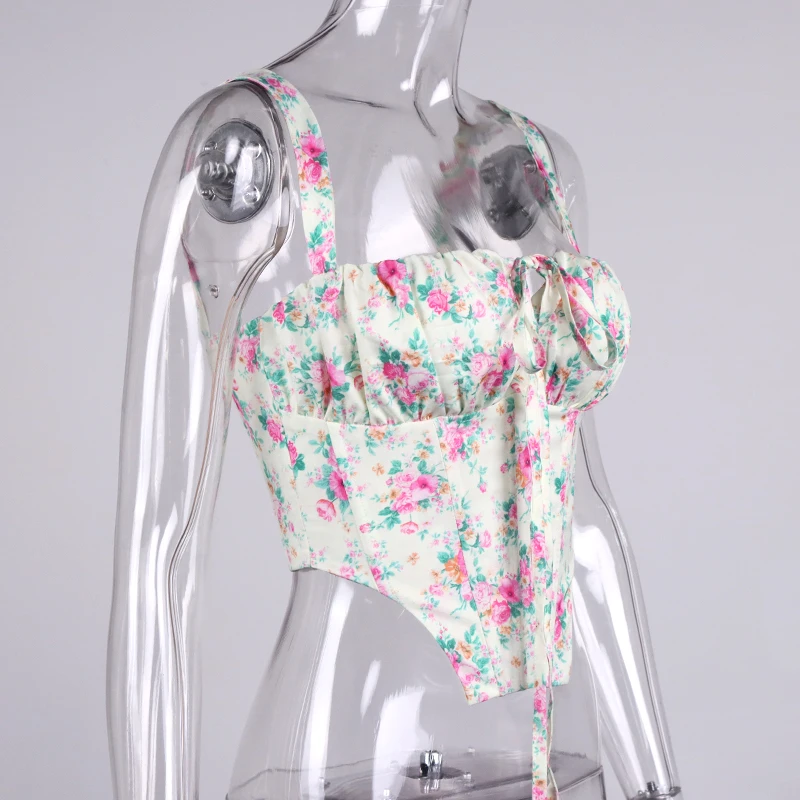FREE SHIPPING Floral Corset Crop Top Print OUT0871