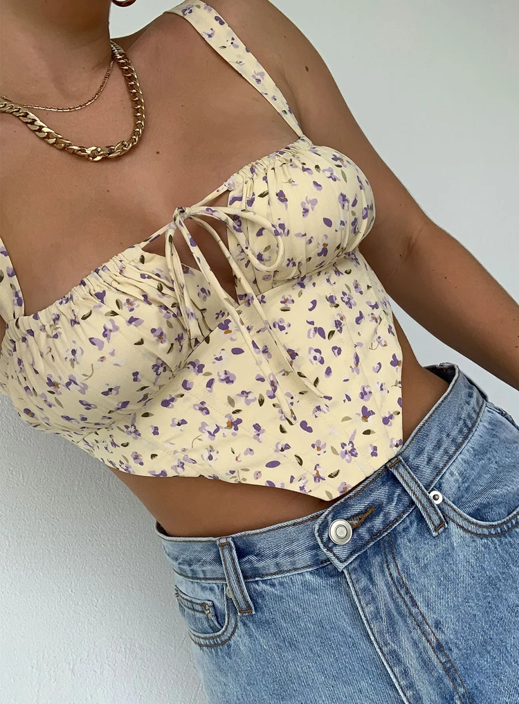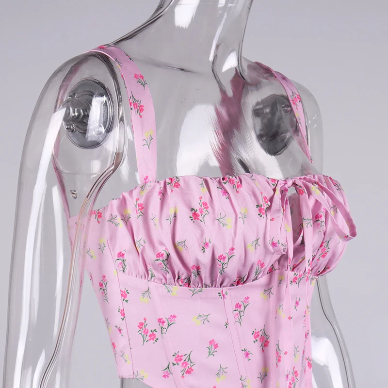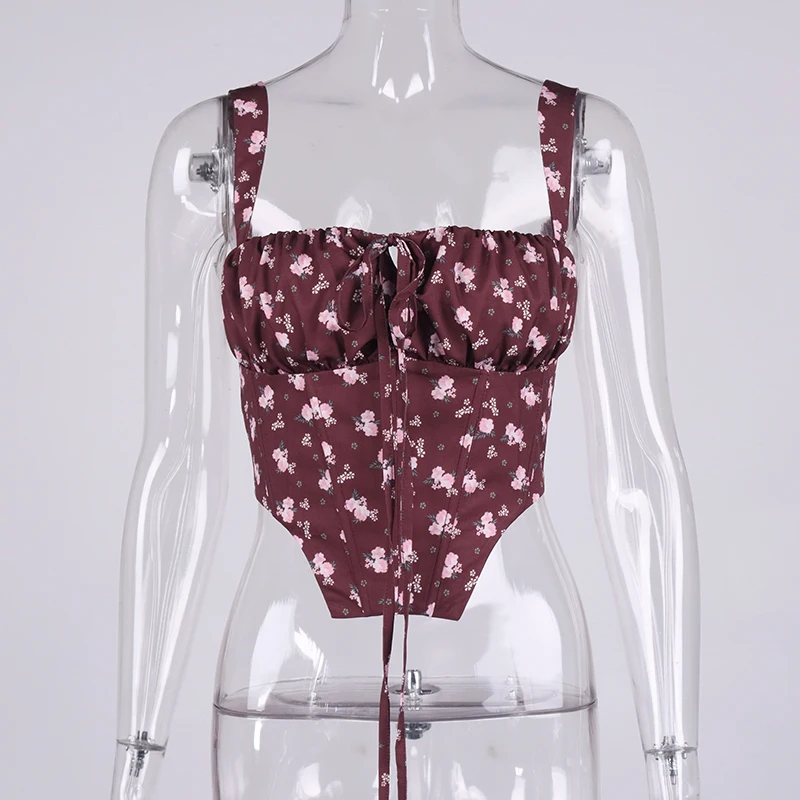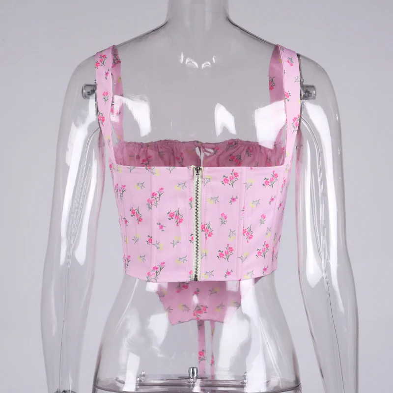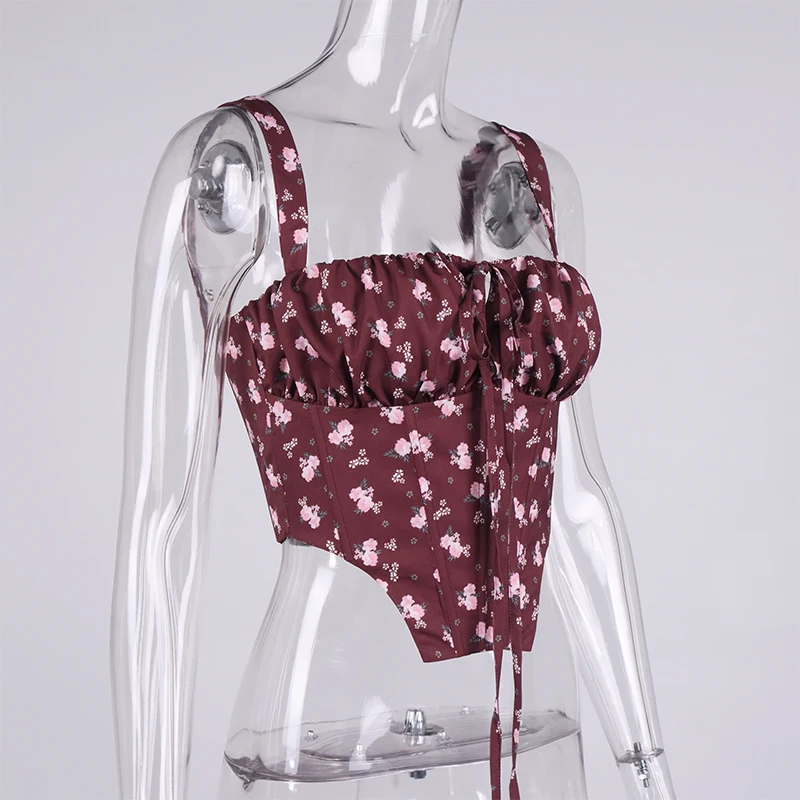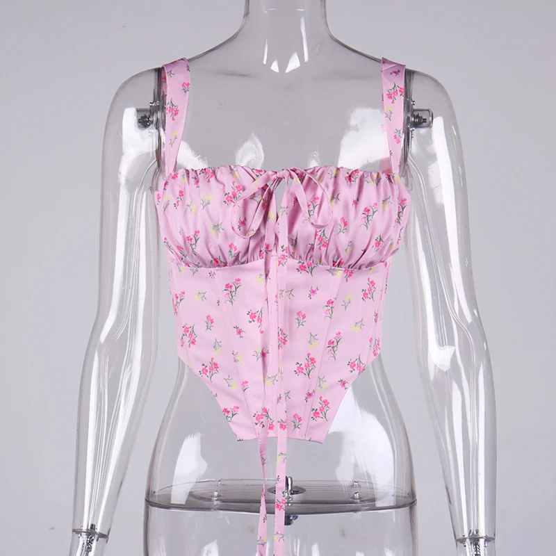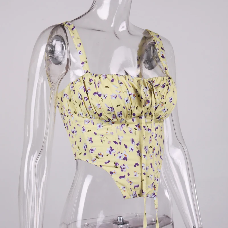FREE SHIPPING Floral Corset Crop Top Print OUT0871