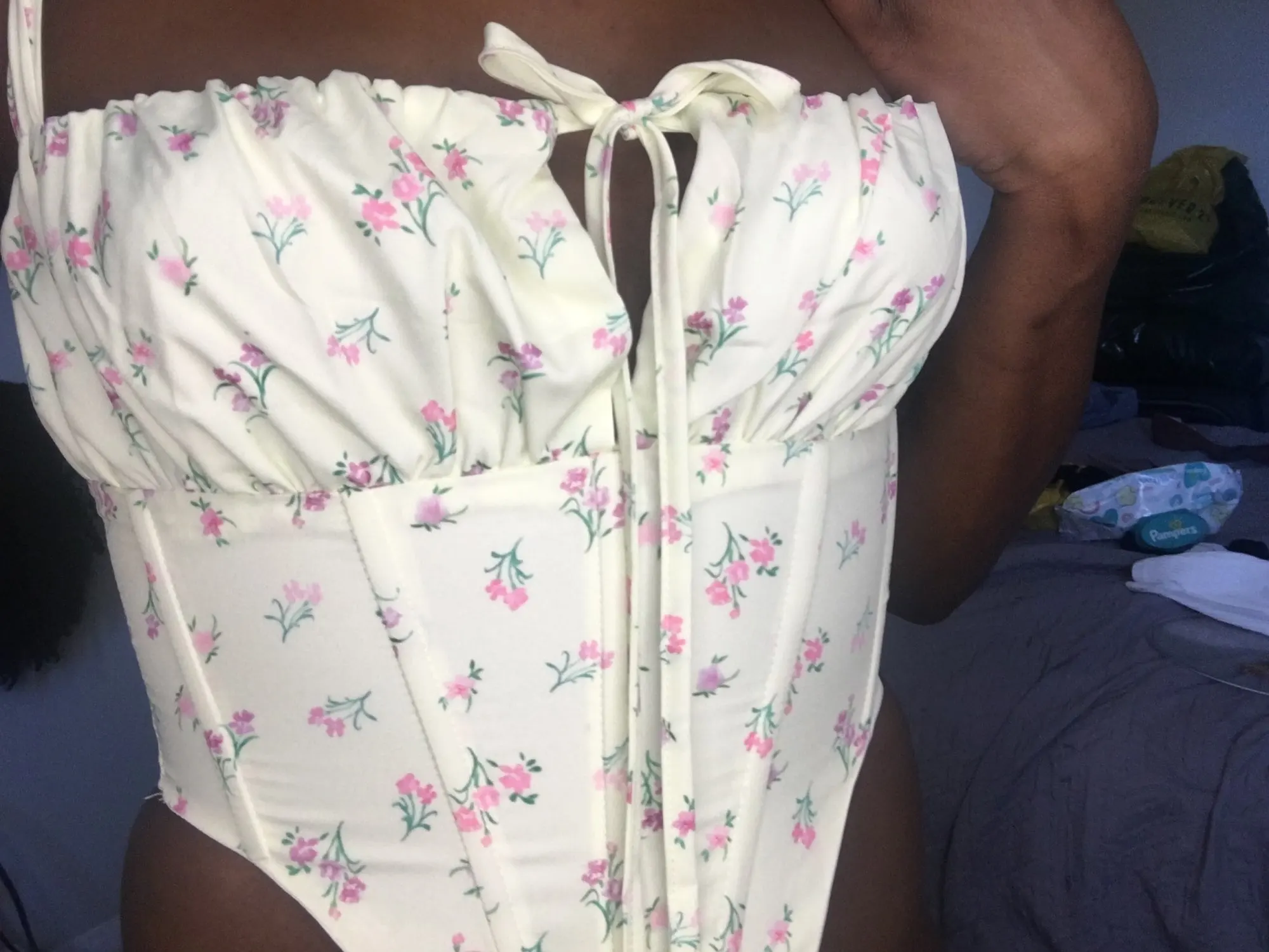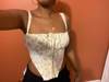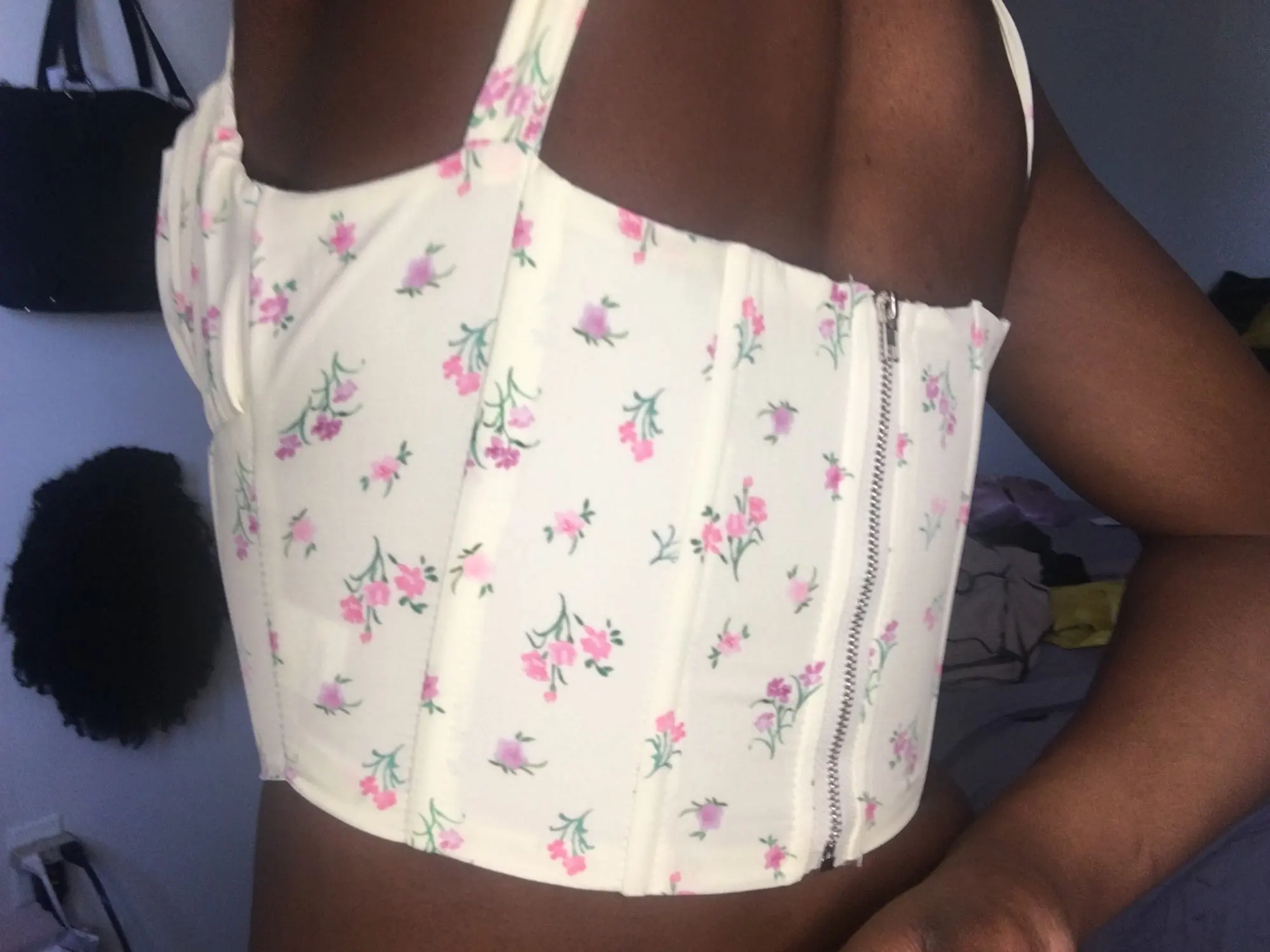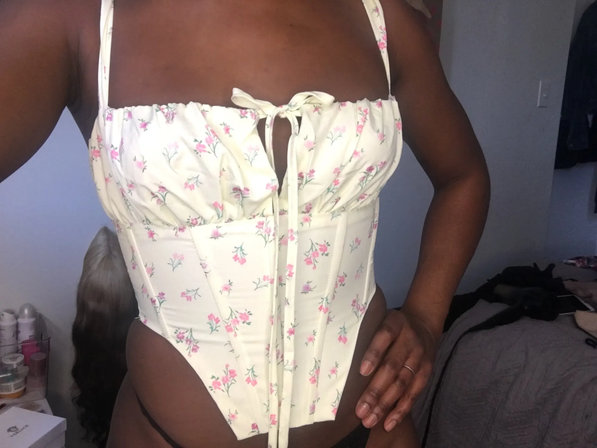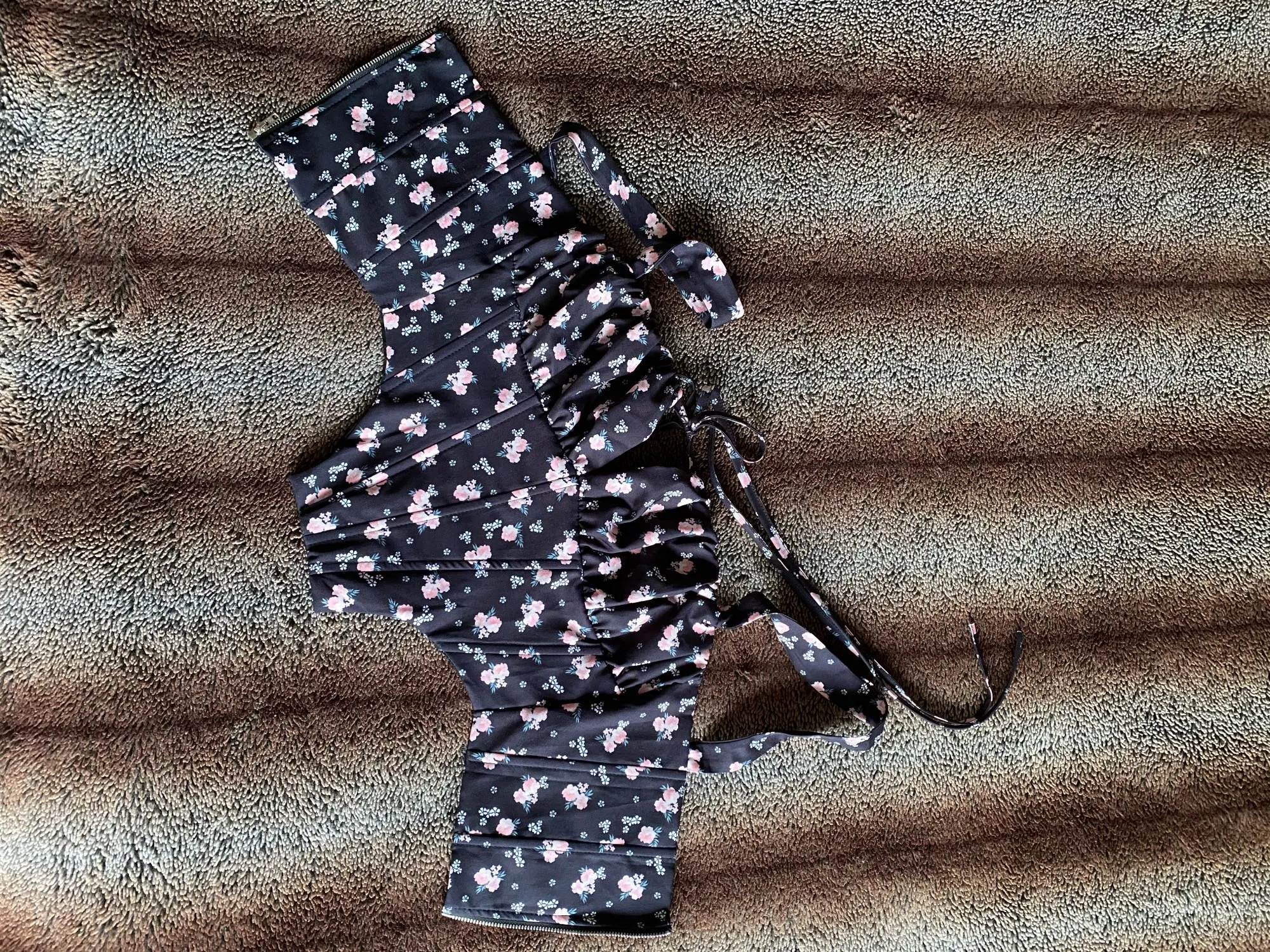 Love this top! The boning is real and I ordered a size up from my usual size (medium instead of small) which fit perfectly. the fabric does not have much stretch and I did cut the center ties to a length i liked because they were super long. I did not communicate with the store.
