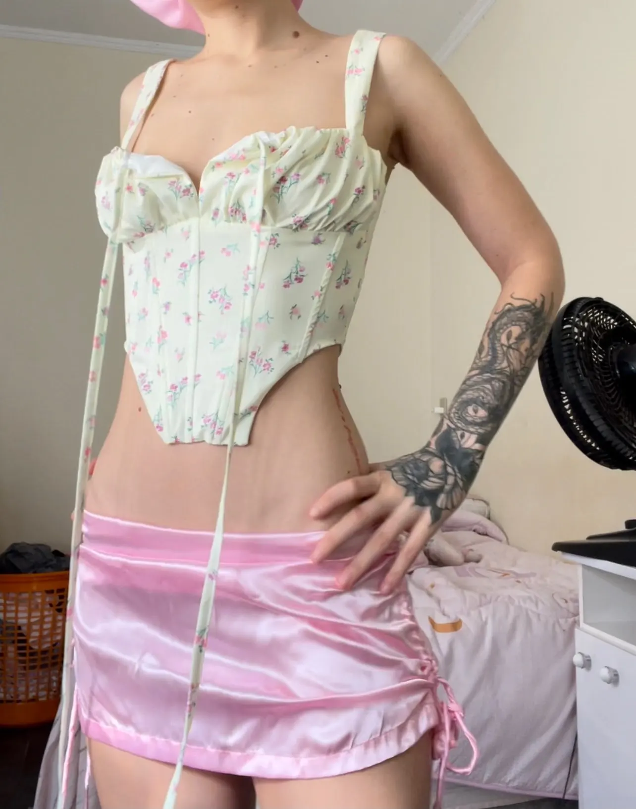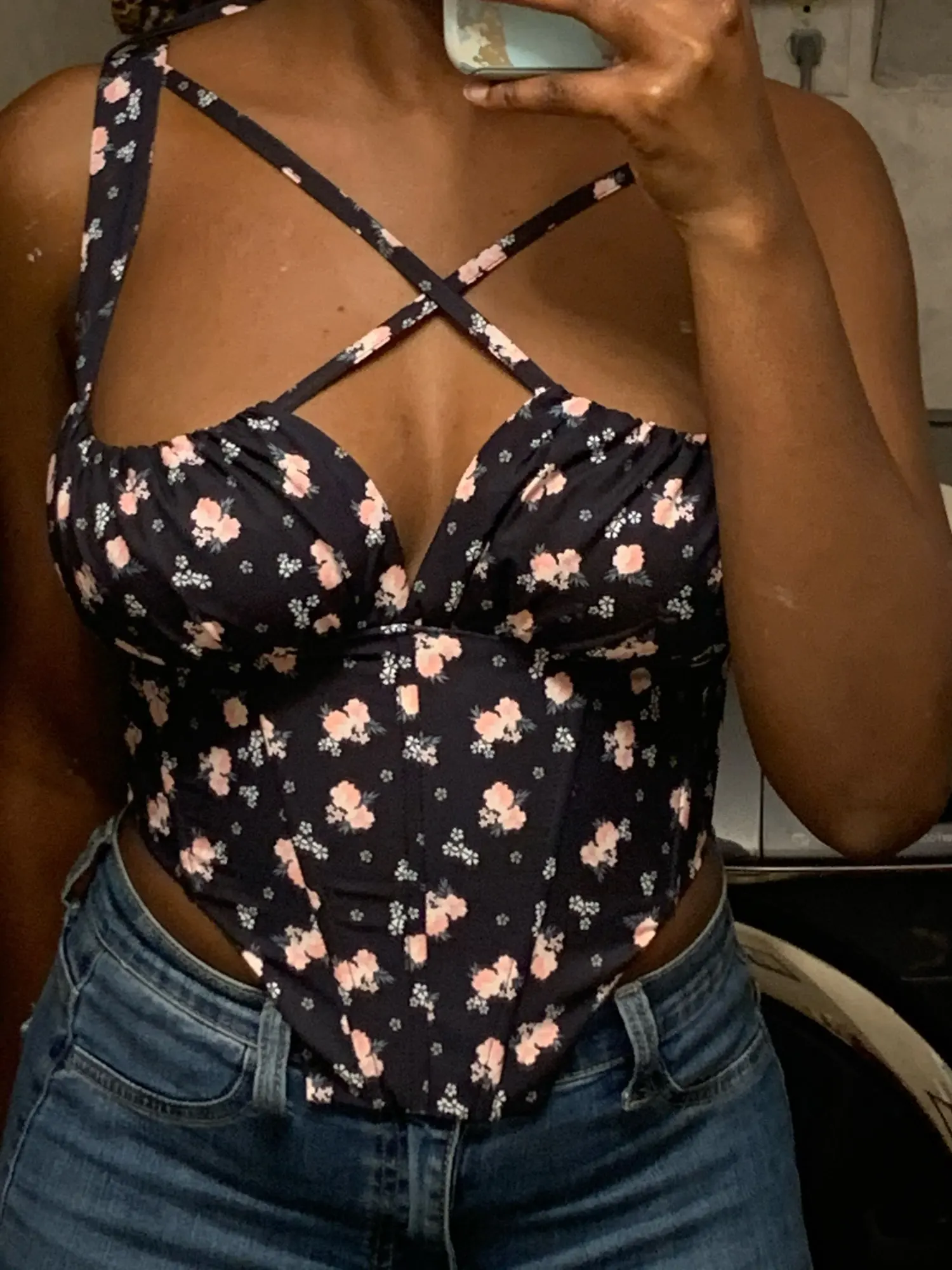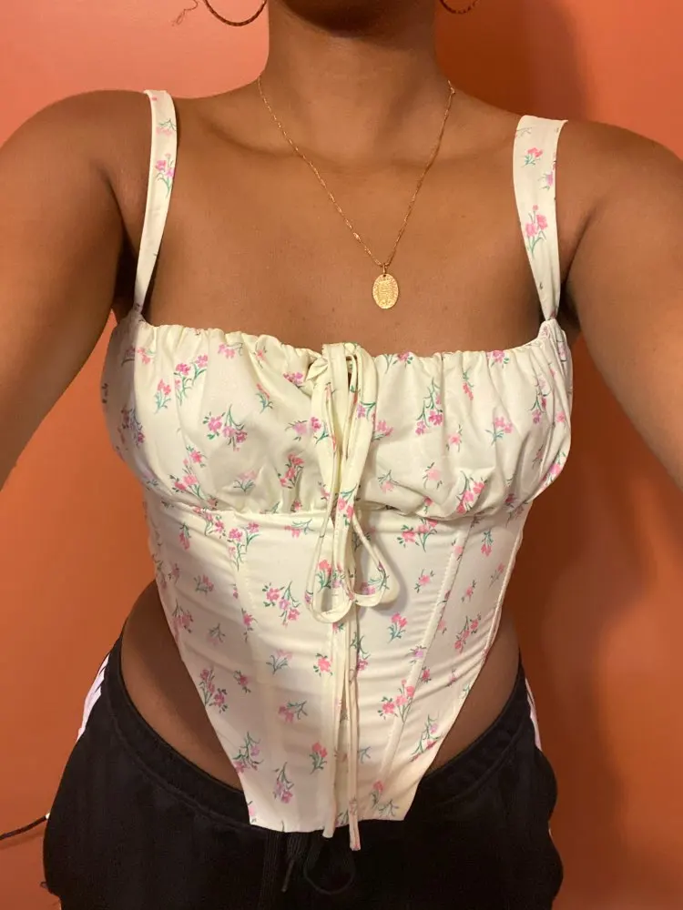 FREE SHIPPING Floral Corset Crop Top Print OUT0871
