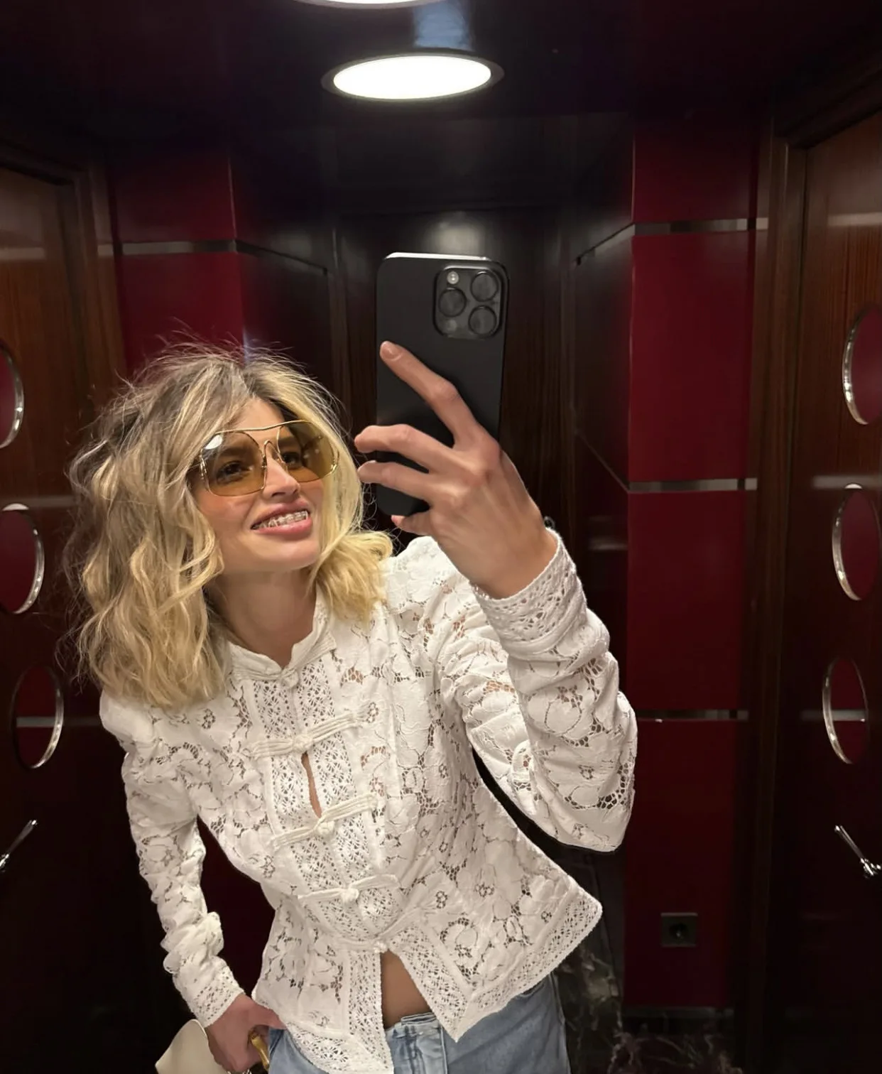 At 178 cm, the sleeves are not short; the blouse itself is super transparent, just below the navel. It doesn't itch, which is fine for an evening outing!