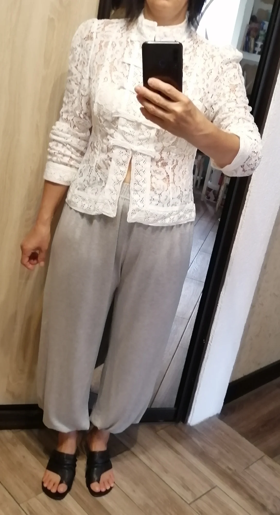 Beautiful blouse, really liked it. Sewn neatly, beautiful lace trim, quality is not bad, size matches.