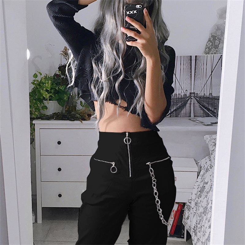 FREE SHIPPING Harajuku Streetwear Solid Black Casual Harem Pants With Chain