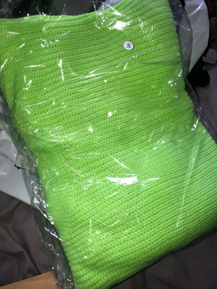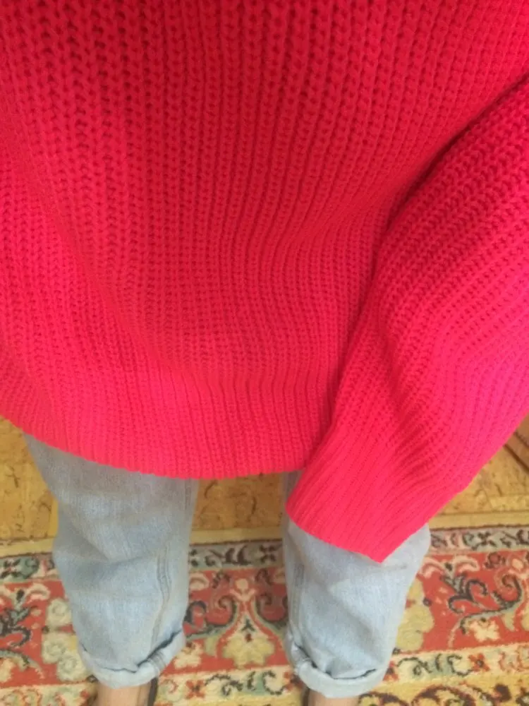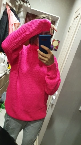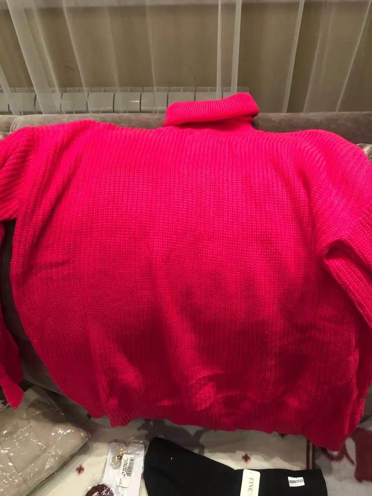 Из минусов - материал синтетический и тоньше, чем я ожидала + запах сырости. Из плюсов - потрясающе яркий цвет и оверсайз. Очень довольна тем, как свитер сидит, специально взяла m, хотя сейчас ношу s, и не прогадала. Талия 62, бедра 91, рост 166 см. В магазине за такие деньги синтетику бы не купила, но эксперимент с покупкой удался - рекомендую свитер, единственное, учтите минусы при заказе.