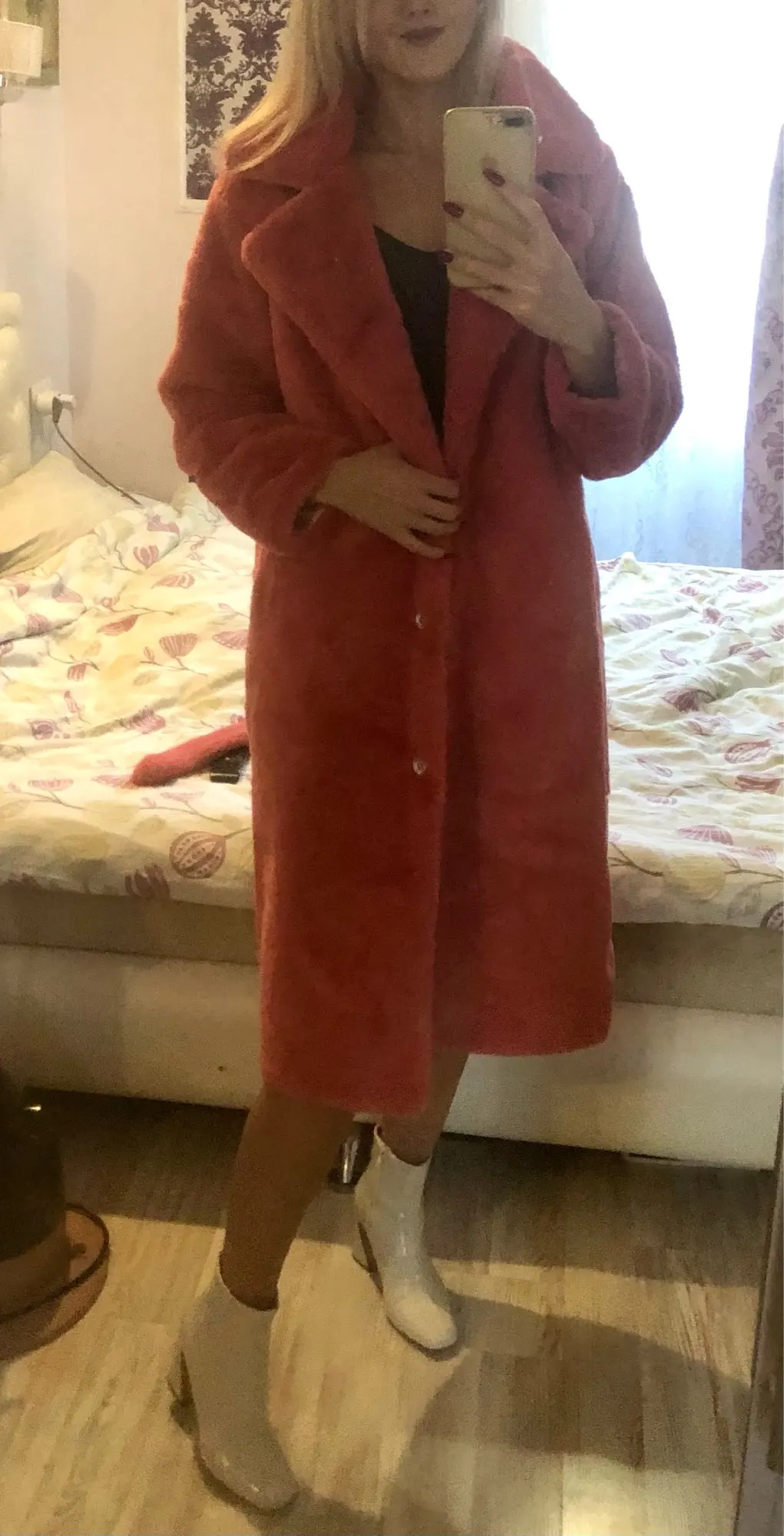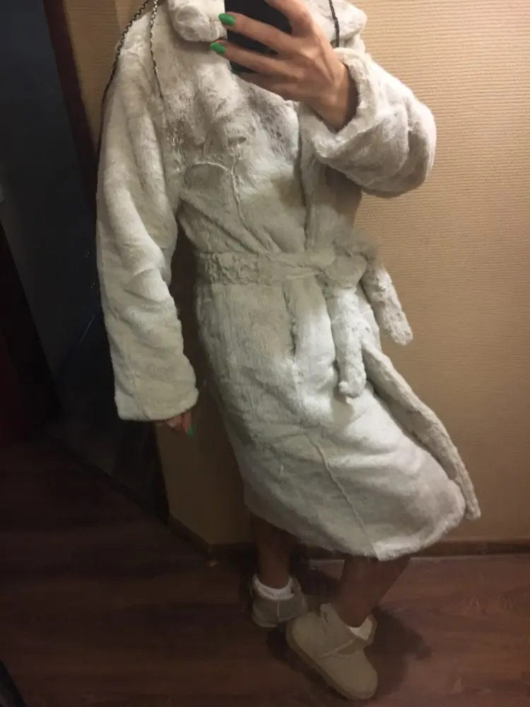 Это восторг!!!! Никогда бы не подумала, что можно приобрести настолько замечательную вещь за такие деньги!!! Кто сомневается, то отвечу берите сразу и не думайте! В подарок положили пушистика. На рост 165 достаточно длинная до половины голени, для меня идеально. Сейчас тепло поэтому в деле так сказать не проверяла, но при примерке буквально 30 сек и становится жарко в ней!!! СУПЕЕЕР МЯГКАЯ сделано как под натуральную супер!!!! Самый лучший товар, который я заказывала на али. Переживала, что будет идти долго, потому что в отзывал пишут, что идёт по 3 месяца, но! сразу после оплаты я написала продавцу, чтобы отправил мой товар как можно быстрее и О ЧУДО!!! прошло чуть больше 3 недель и товар у меня !!! Для доставки в Беларусь, тем более не в Минск, это очень быстро! За это отдельное спасибо. По поводу рукавов сомневалась также из-за отзывов, но все опять же хорошо закрывают половину ладони. Взяла размер М, ношу обычно S, но взяла на размер побольше для свитеров и не прогадала! Комфортно