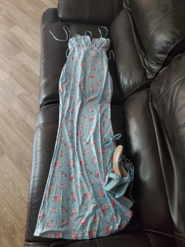 Beautiful dress and super mega long. Now just tie the ropes as in the photo or at your convenience. I did not need to contact the store, I was aware of the transit without having to discuss with him.