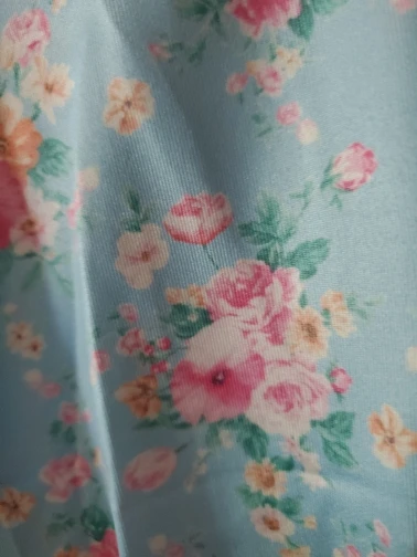 super cute has strech so that's good colors turned out great. great for the summer. flowers are bright. looks like the pic. don't stink.