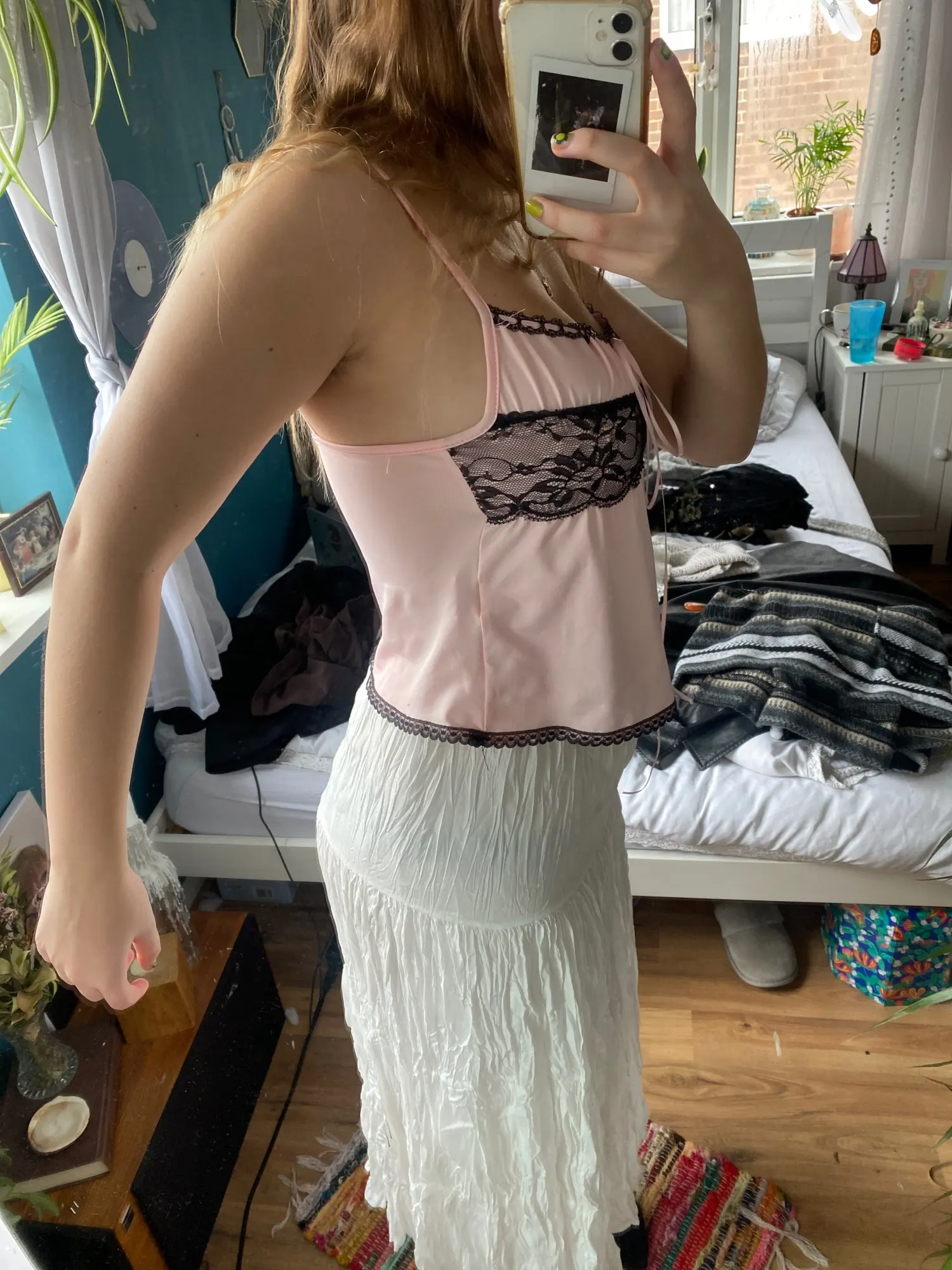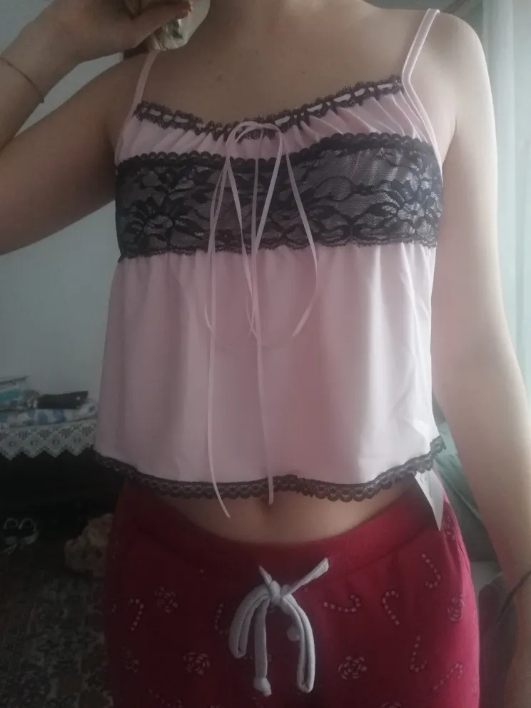 cute, material feels like those smooth swimsuit ones, but it’s nice and stretchy. the top is adjustable because of the ribbon too!