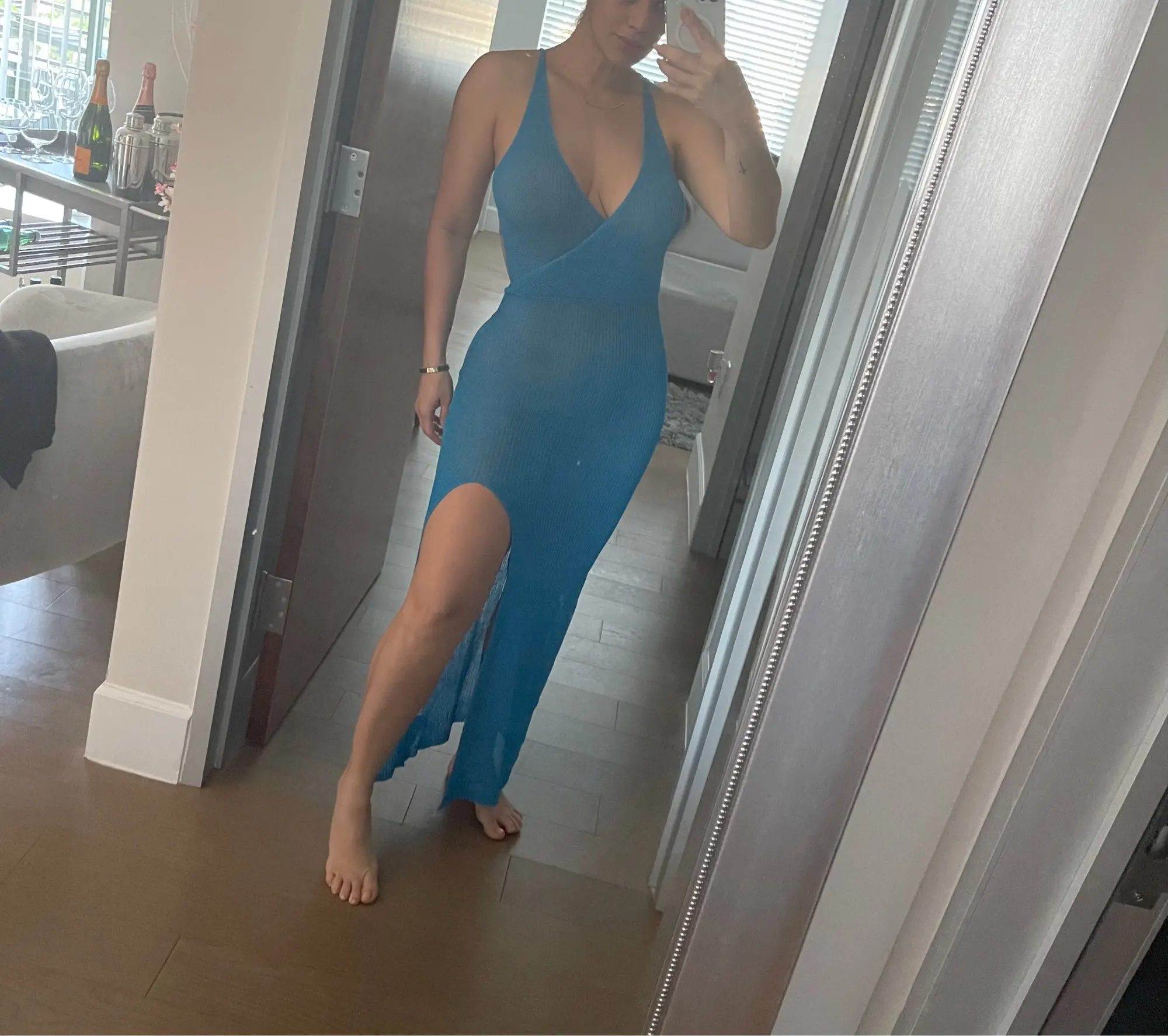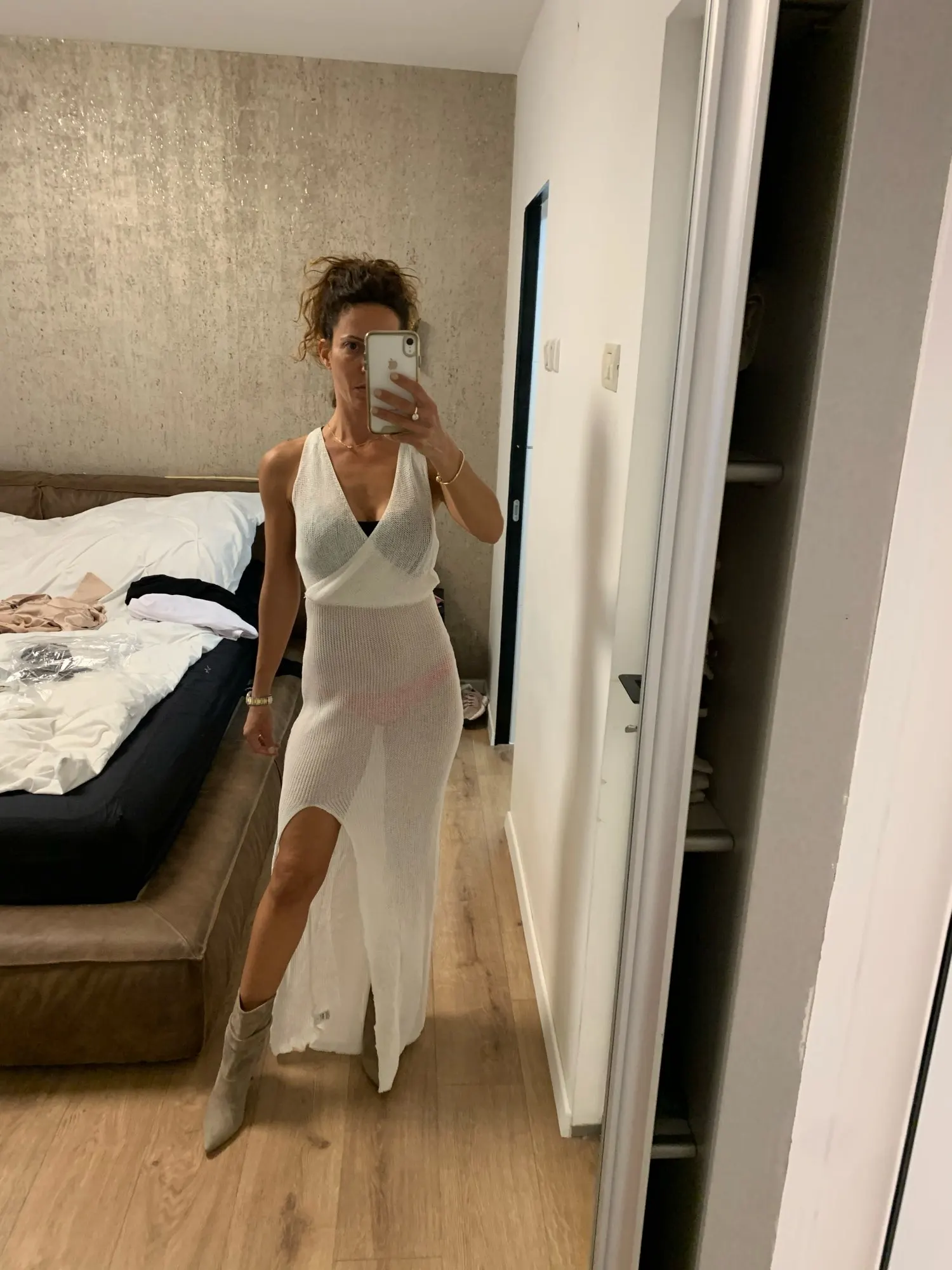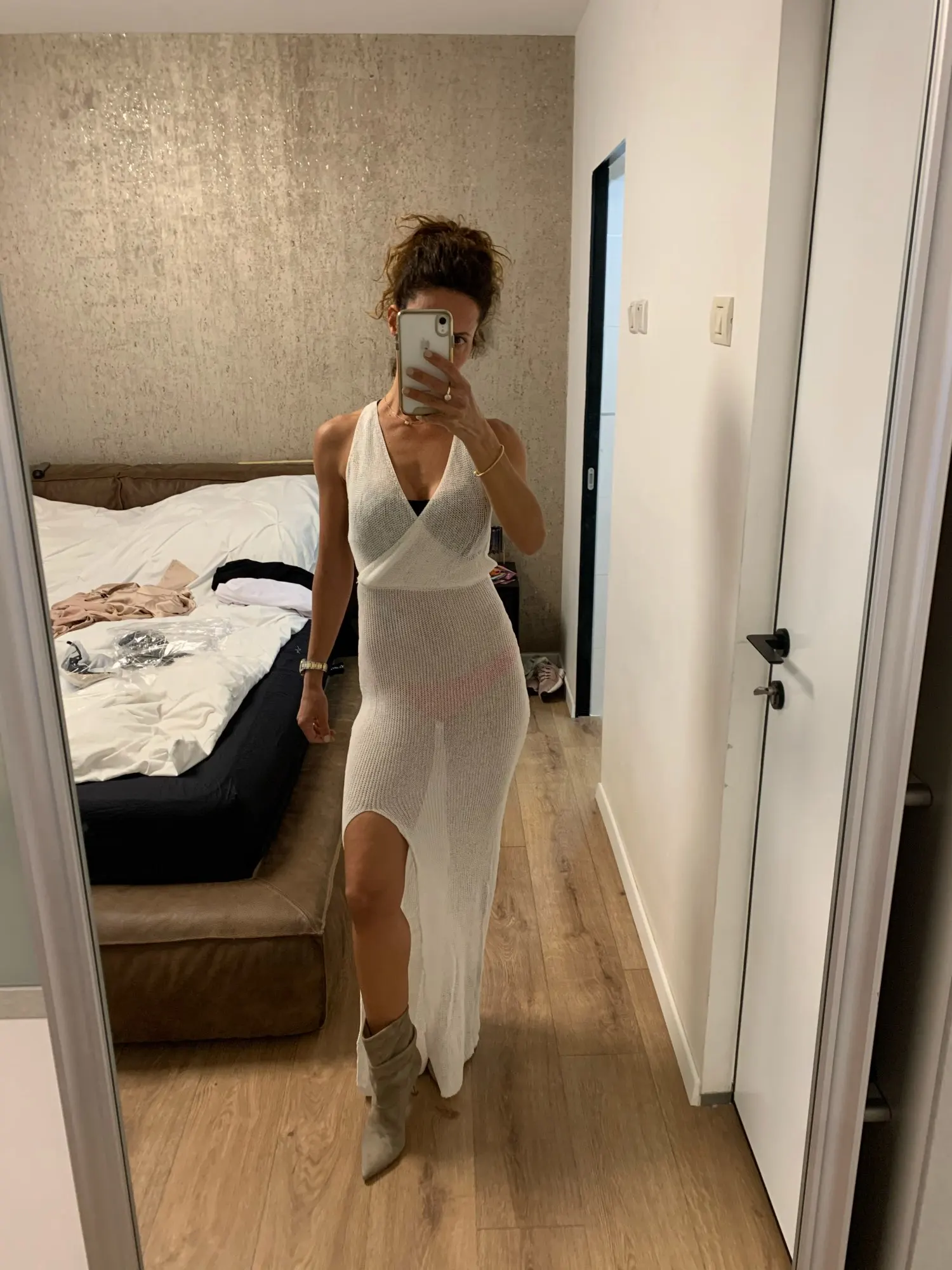Such a lovely dress. The dress is made of a knitted polyester material and is super complimenting on the body. Is a bit see through but that’s because it’s knitted. I am 5’2 and the dress wasn’t too long for me. Shipping took like 10 days to the UK