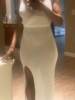 FREE SHIPPING New Crochet Maxi Dress Lacing Split OUT0846