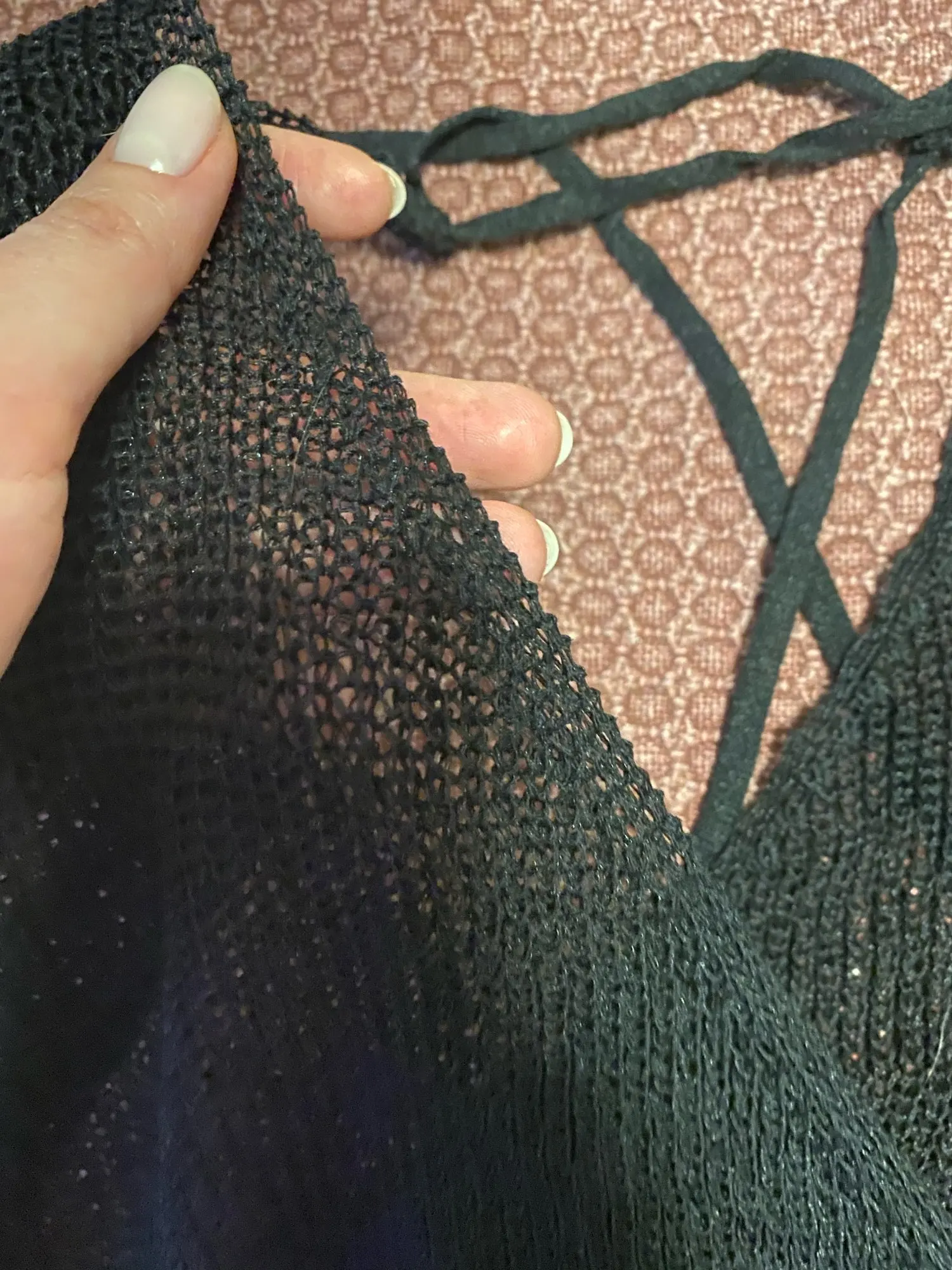 Item just as described, thin knit material. Perfect for swimsuit cover up