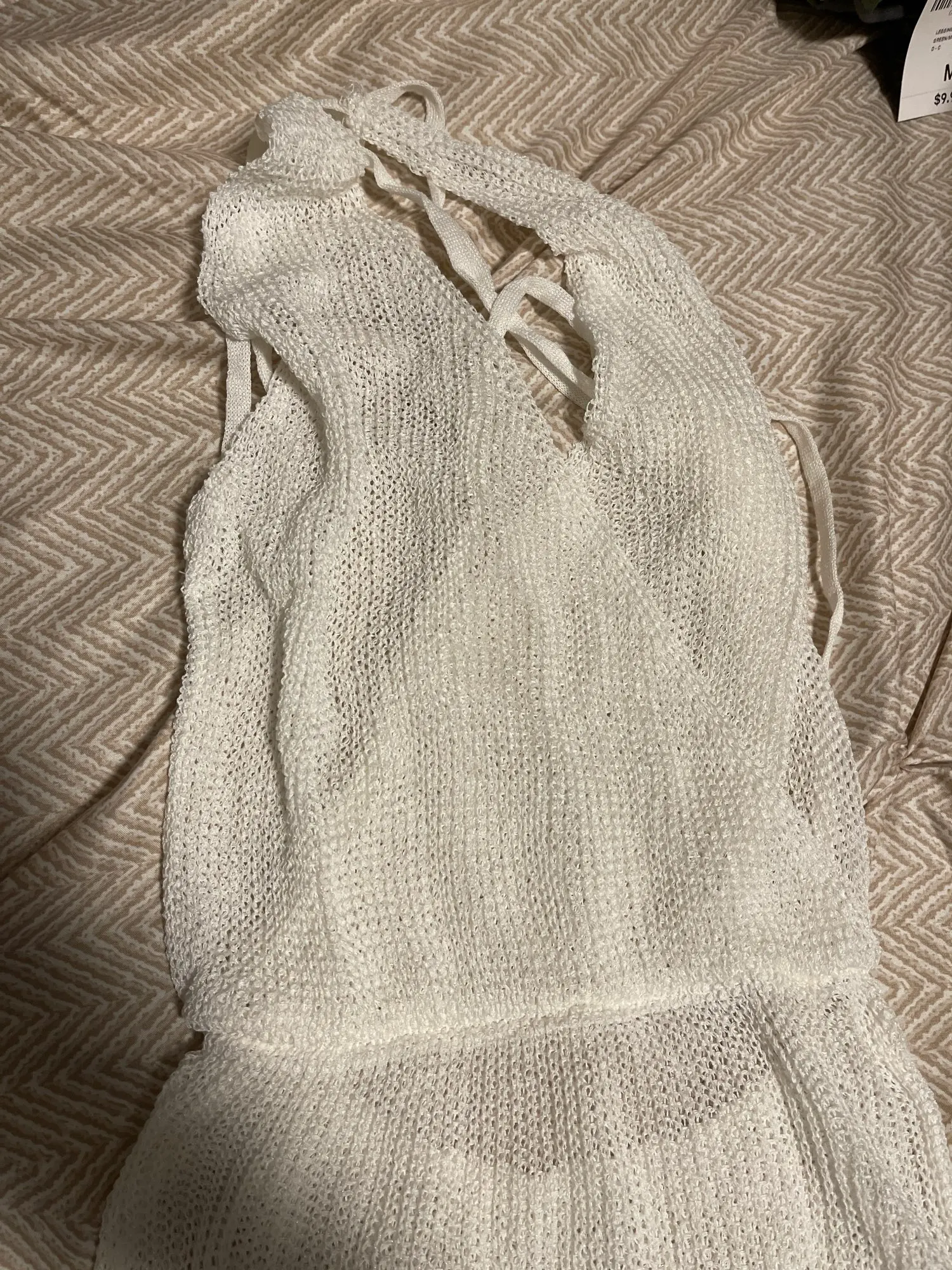 A beautiful beach tunic, there is a small marriage in the form of a hole on the seam, but this is fixed) The size corresponds to the description, on its parameters 90,65, 95, took the size S, sat perfectly))