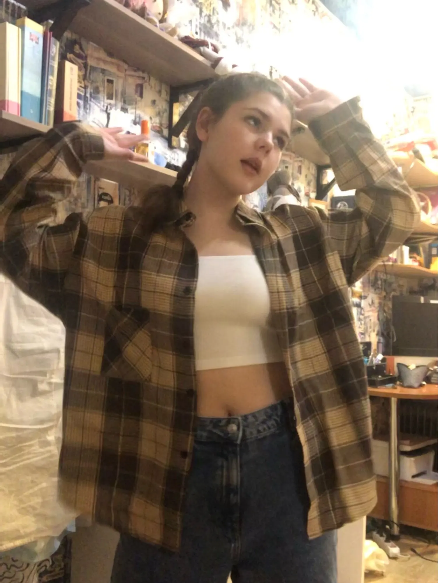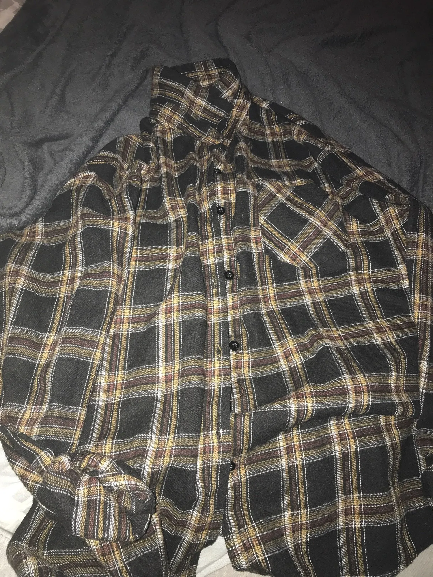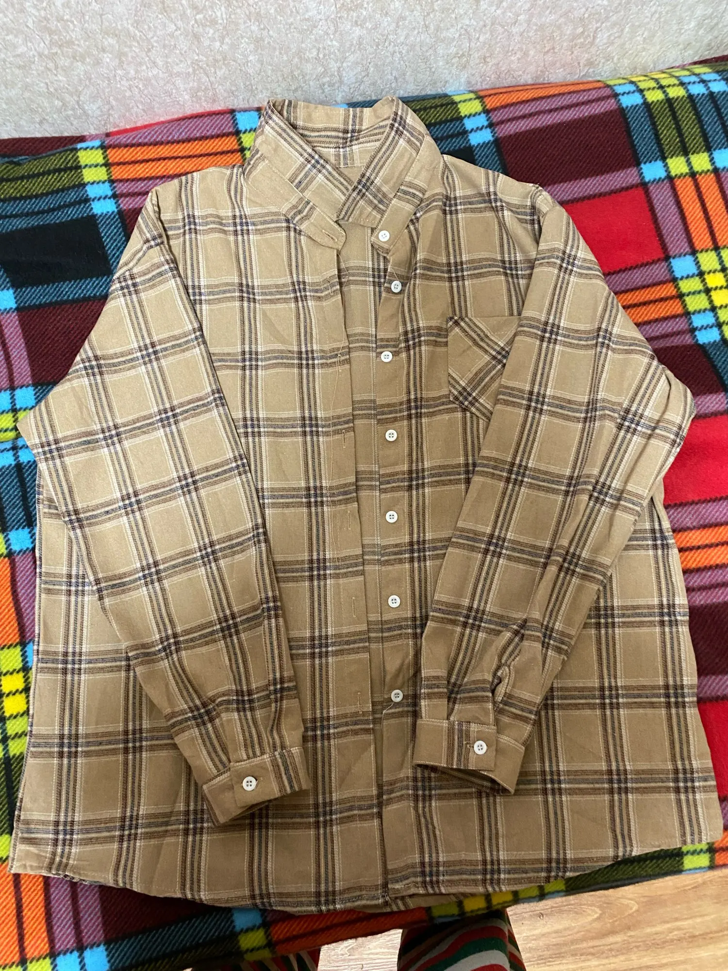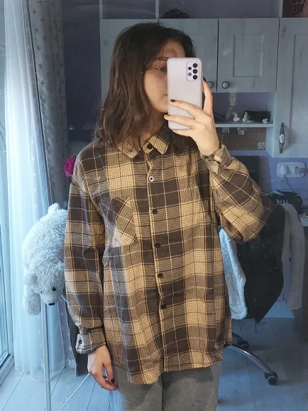 FREE SHIPPING Oversized Plaid Shirt Brown Classic Style 90s OUT0931
