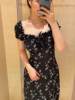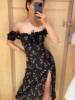 FREE SHIPPING Parisian Dress Floral Print Off Shoulder Puff Sleeve Maxi Dress OUT0937