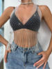 FREE SHIPPING Rhinestone Crop Top Party Club Mesh See Through Diamond Chain Tassels Tank Top OUT0997