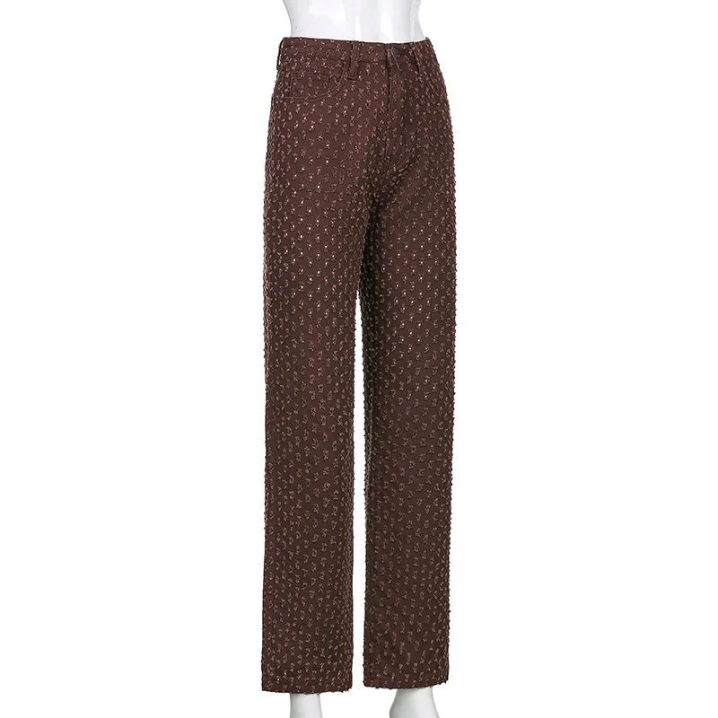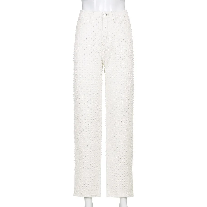 FREE SHIPPING Ripped Jeans Low Waisted Wide Leg Pants Streetwear OUT0851