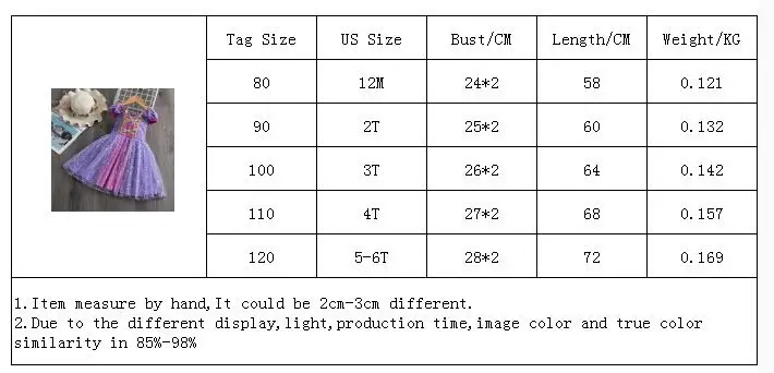 The dress is super, very beautiful. All as in the photo. The truth went very long, almost 4 months, ordered in November, and it came on March 1. But this, I think because of problems in China, the store here is not. Size 3 T ordered for 2,6. Of course, it will be on growth, I think years to 4 will wear. Behind the dress there is a ribbon that can be adjusted on the belt. The lift is very lush, 5 layers.