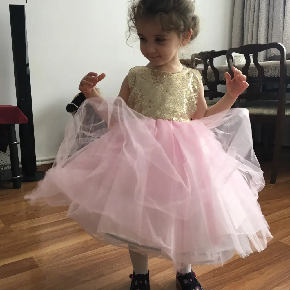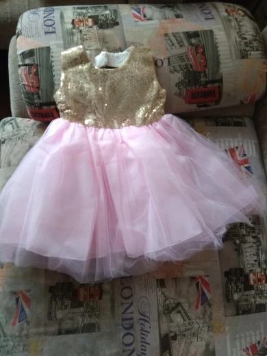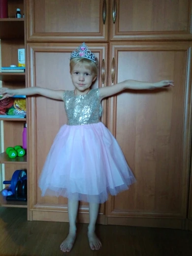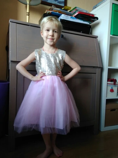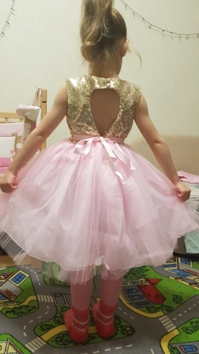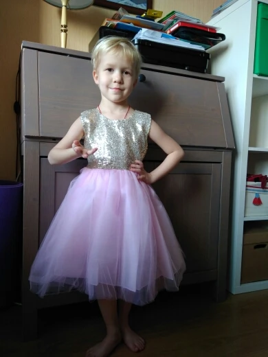 Wonderful dress, sometimes child says that hurt armpit of sequins, scratch, the first photo without подюбки, the second with подюбкой, there is almost no difference