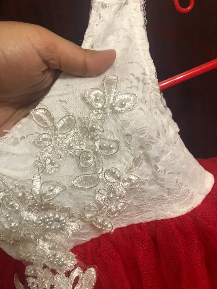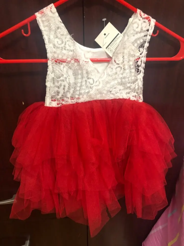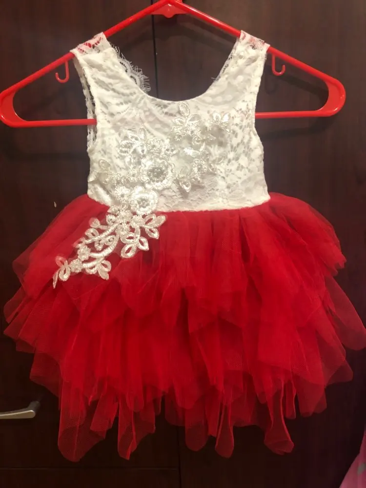 The dress is super, very beautiful. All as in the photo. The truth went very long, almost 4 months, ordered in November, and it came on March 1. But this, I think because of problems in China, the store here is not. Size 3 T ordered for 2,6. Of course, it will be on growth, I think years to 4 will wear. Behind the dress there is a ribbon that can be adjusted on the belt. The lift is very lush, 5 layers.