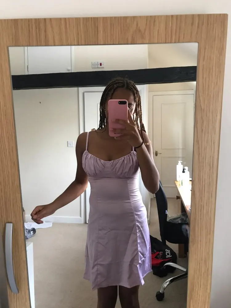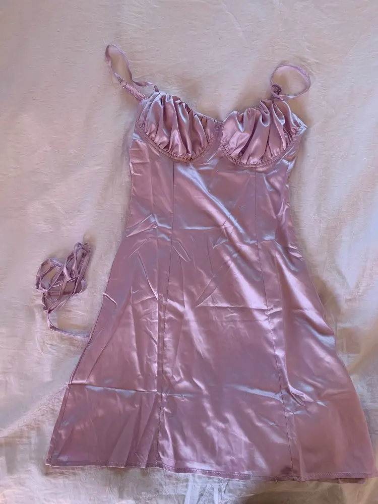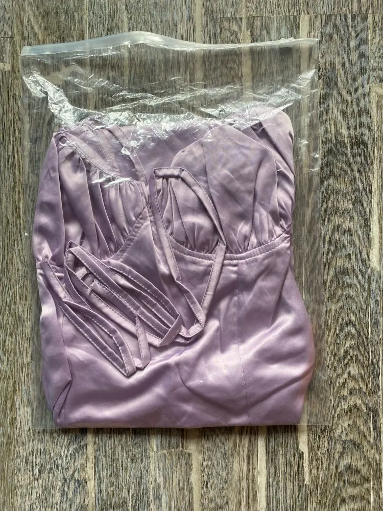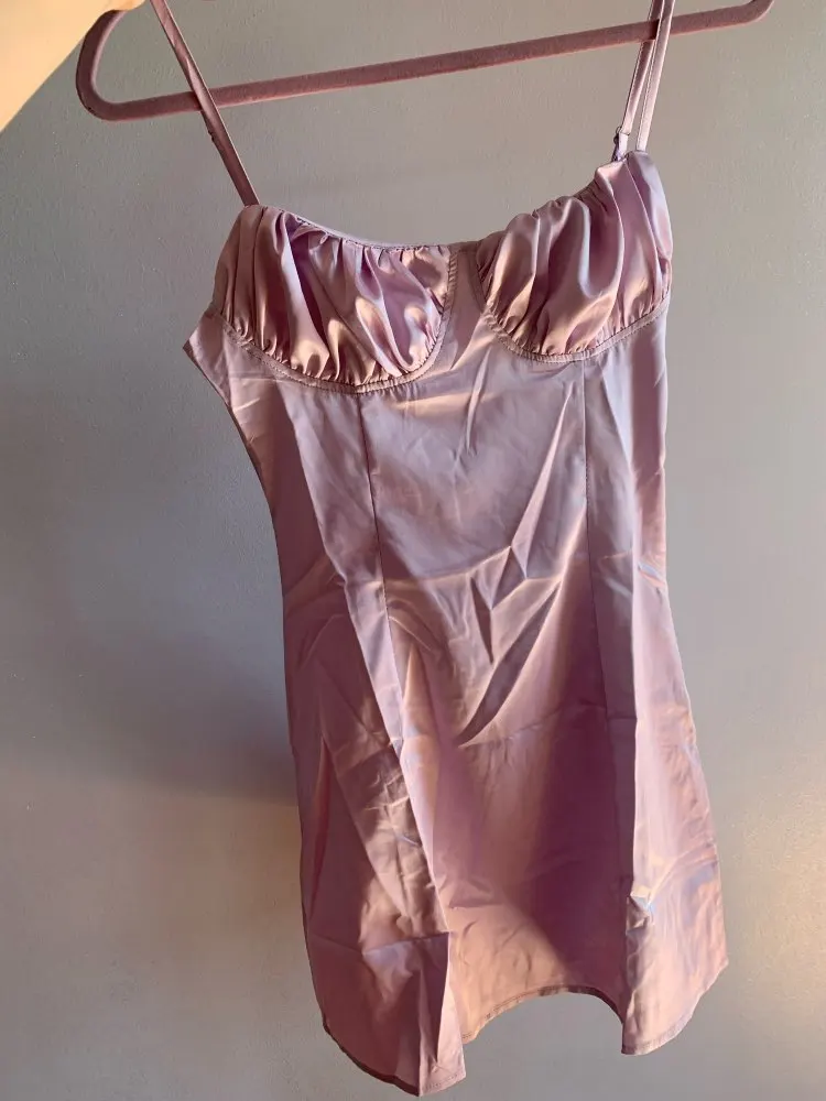 Ordered 27.03.20 in Poland 10.04.20 delivered 20.04.20 Really nice dress,beautiful lilac colour, material is not stretchy, the cups for boobs hold them really nice. It is difficult to put it on by yourself;) generally recommend