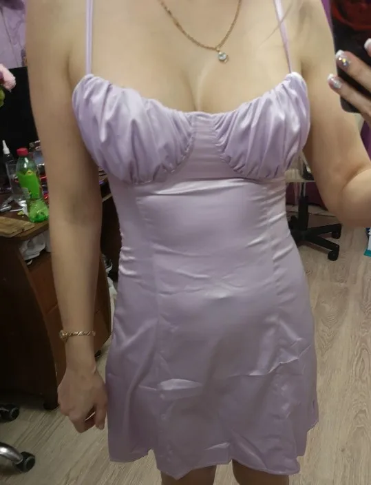 Here you know when five goods come from Alika and all G *** Oh, but one of them is so cool that it closes everything. The dress is very cool) the ties on the back of the fire-adjust everything perfectly at the waist. The bodice is also excellent and the fabric is good) the loops are adjustable, but because of the slippery fabric are not very well fixed. Sewing krivovaty (in the photo you can see as prisberen fabric) Well, come on) the color is very cool. Of course, it's hot in the heat but whatever, I wear))) comfortable, far not short (height 164) weight 54 86-66-90 I'm very glad that I bought this charm! Thank you store!! I took a dress at the same price, too, satin in another store-such horror, just tinkle so much, that I had to completely cut off the bottom, it was so screaming (and still I do not wear it) Here everything is fine) even lightning is sewn)) crumples strongly enough, by the way))