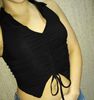Love Love Love you can wear with a bra or without and pull the strings I’m a 36dd and this shirt looks sooo f Ing good I’m actually in love it goes with anything thanks to the strings <3 I’m about 155-165lb and I have no issues besides getting it off it’s a bit tight so you’ll have to pull it over your head and watch out for armpits when putting on if deodorant was applied. Wearing it in the pic below fits like a glove!!!