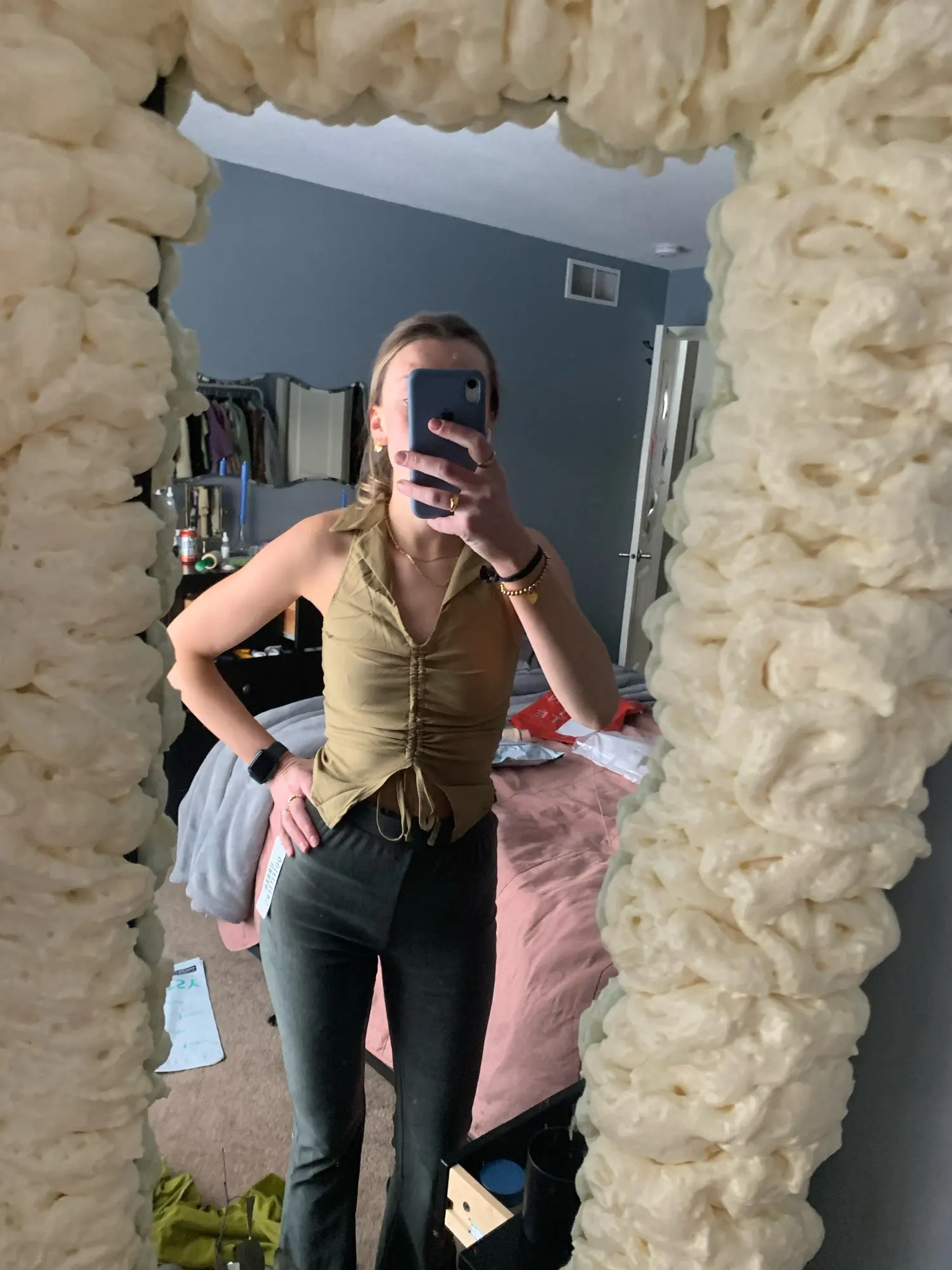 I really love this shirt! It isn’t the material that I thought it would be but it is still a great purchase. I ordered a medium but if you have bigger boobs like me and would like the shirt to be a little bigger, I would definitely size up. I received the order in California within two weeks of ordering. Overall, 10/10!