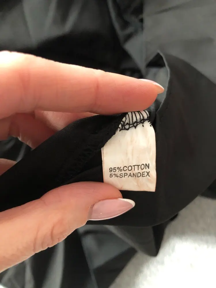 Very nice dress, it’s written 95% cotton and 5% spandex, but for me in touch is more like poliester. It’s not sutitable for summer, more for late spring. Personally, I don’t like these white buttons- I will exchange them for black