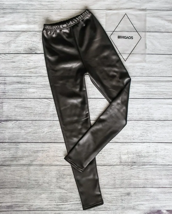 FREE SHIPPING Thick Velvet Leather Leggings Gothic Skinny Pencil Pants For Women OUT0934
