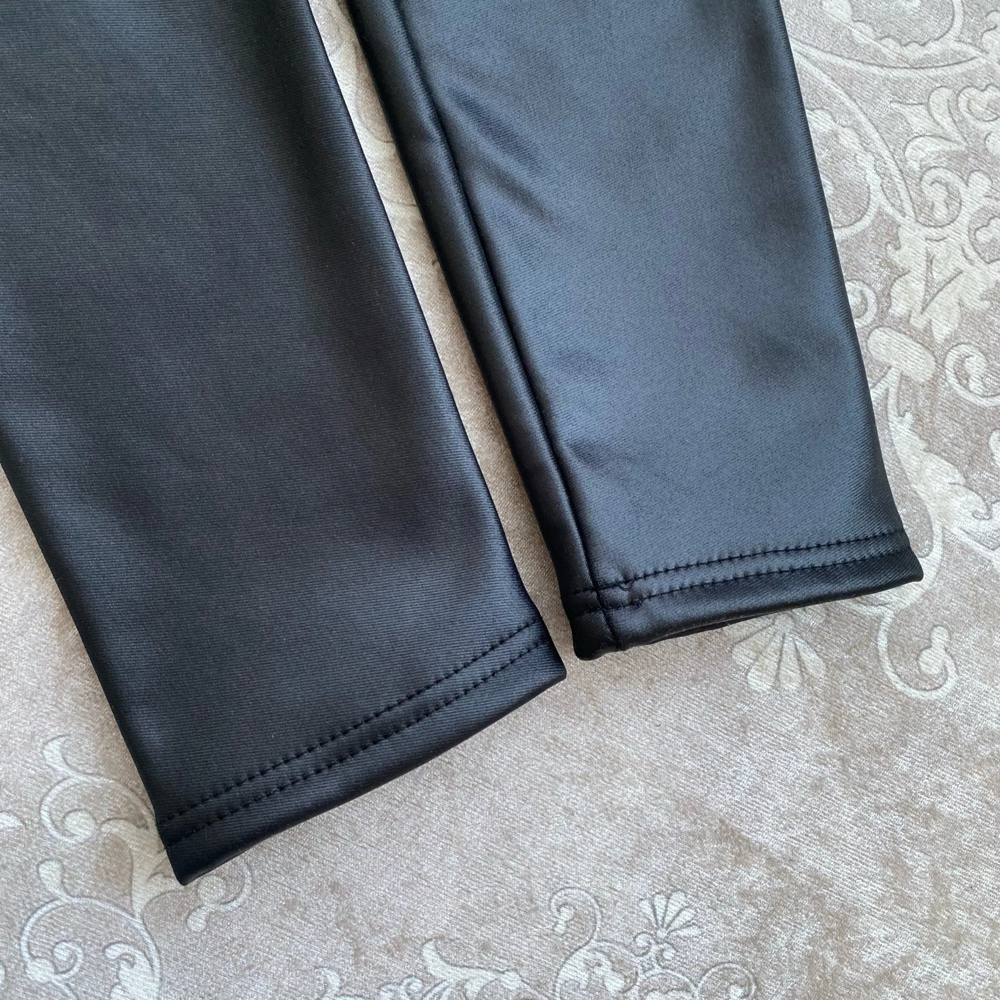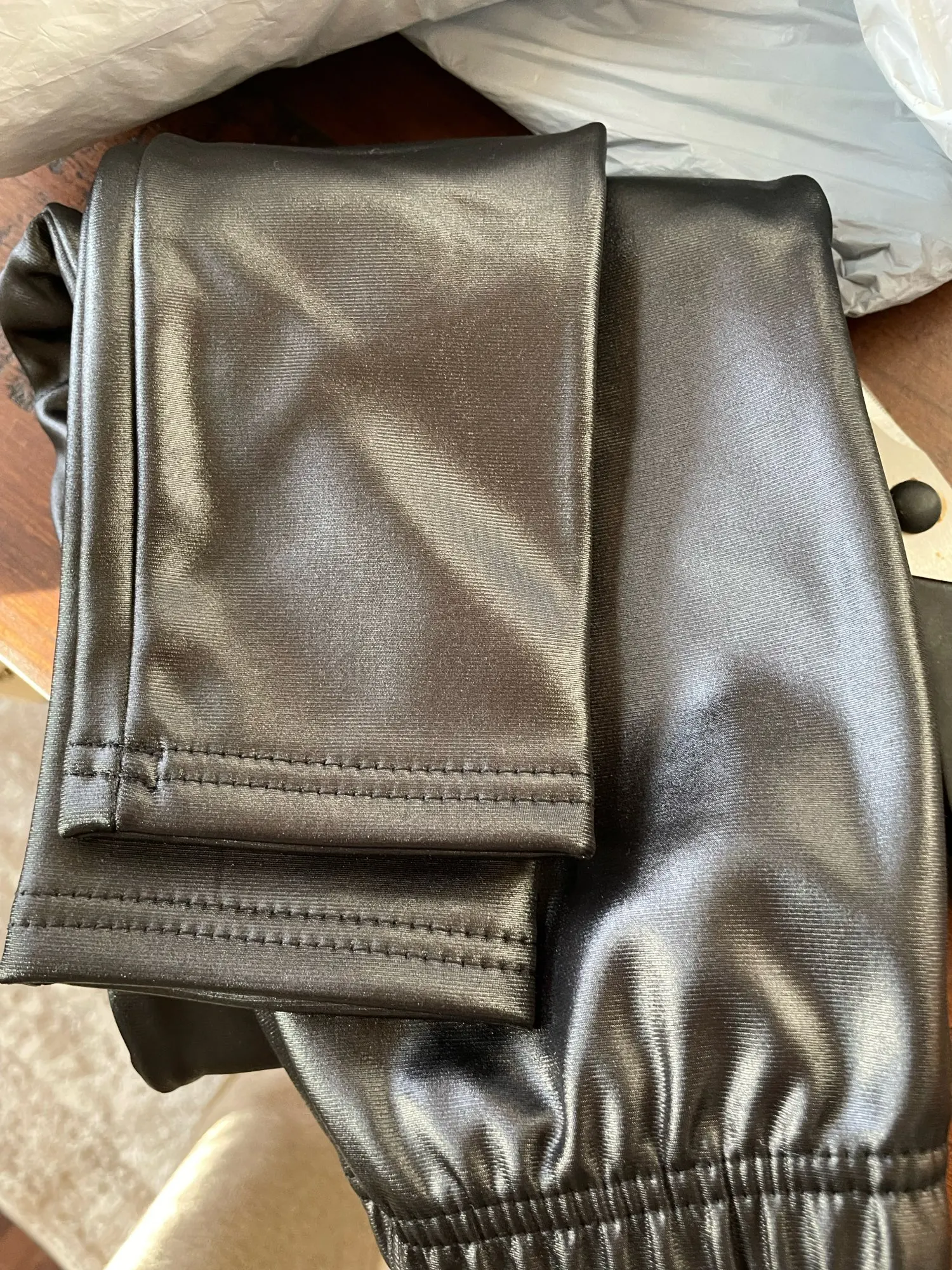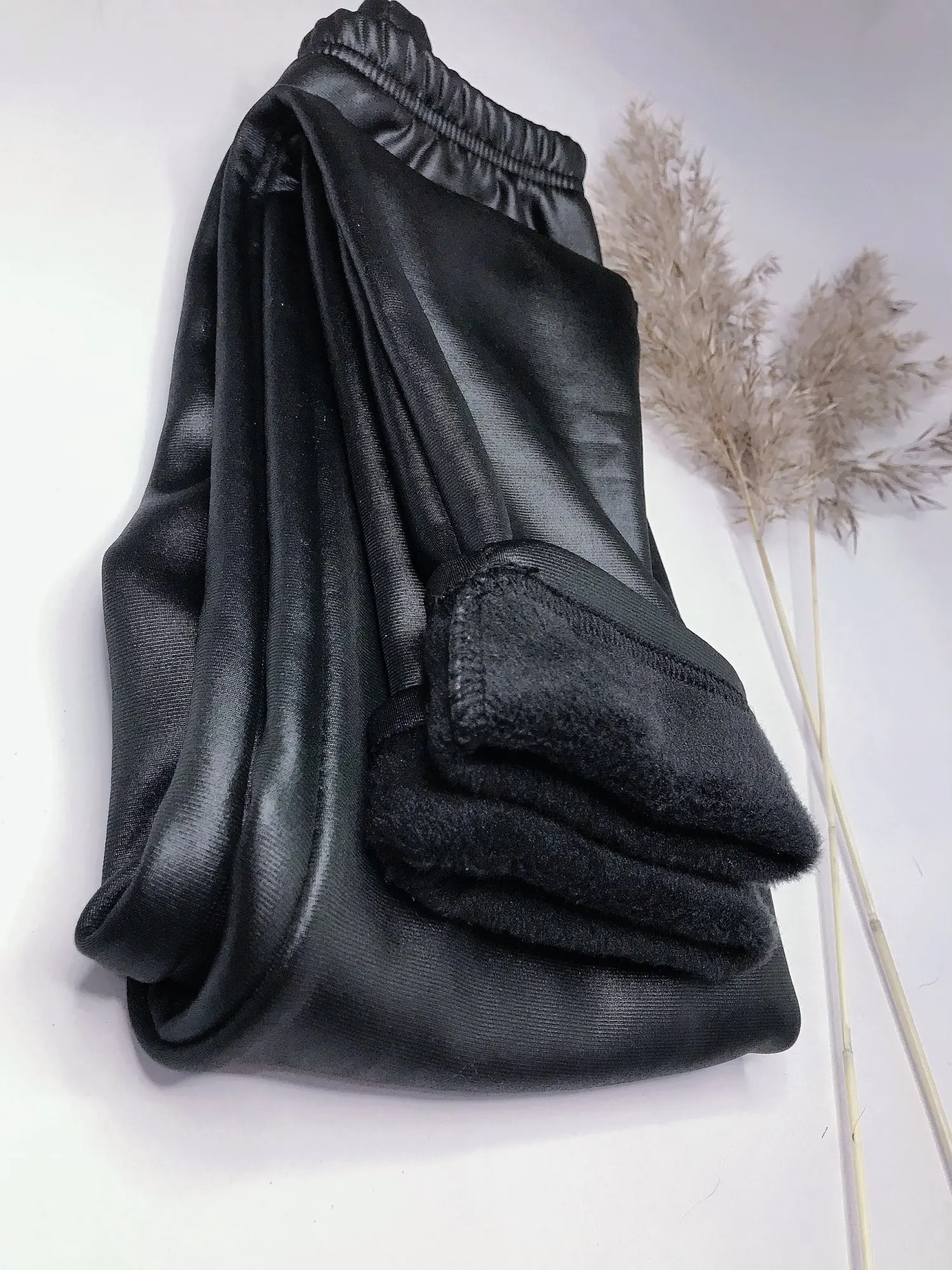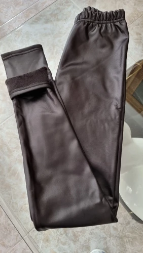 Утеплённые плотные легинсы с напылением кожи, ненавязчивый блеск , не очень хорошо тянутся , даже сказала бы что они мне короткие на параметры 80-60-88 и рост 168, примерно до 164 будут хорошо, хотелось бы повыше линию посадки , резинка фиксируется на бёдрах что не очень удобно , в целом легинсы очень понравились , внутренняя подкладка плюшевая , зимой точно будет в них тепло , до Новосибирской области посылка пришла за две недели, продавца рекомендую однозначно