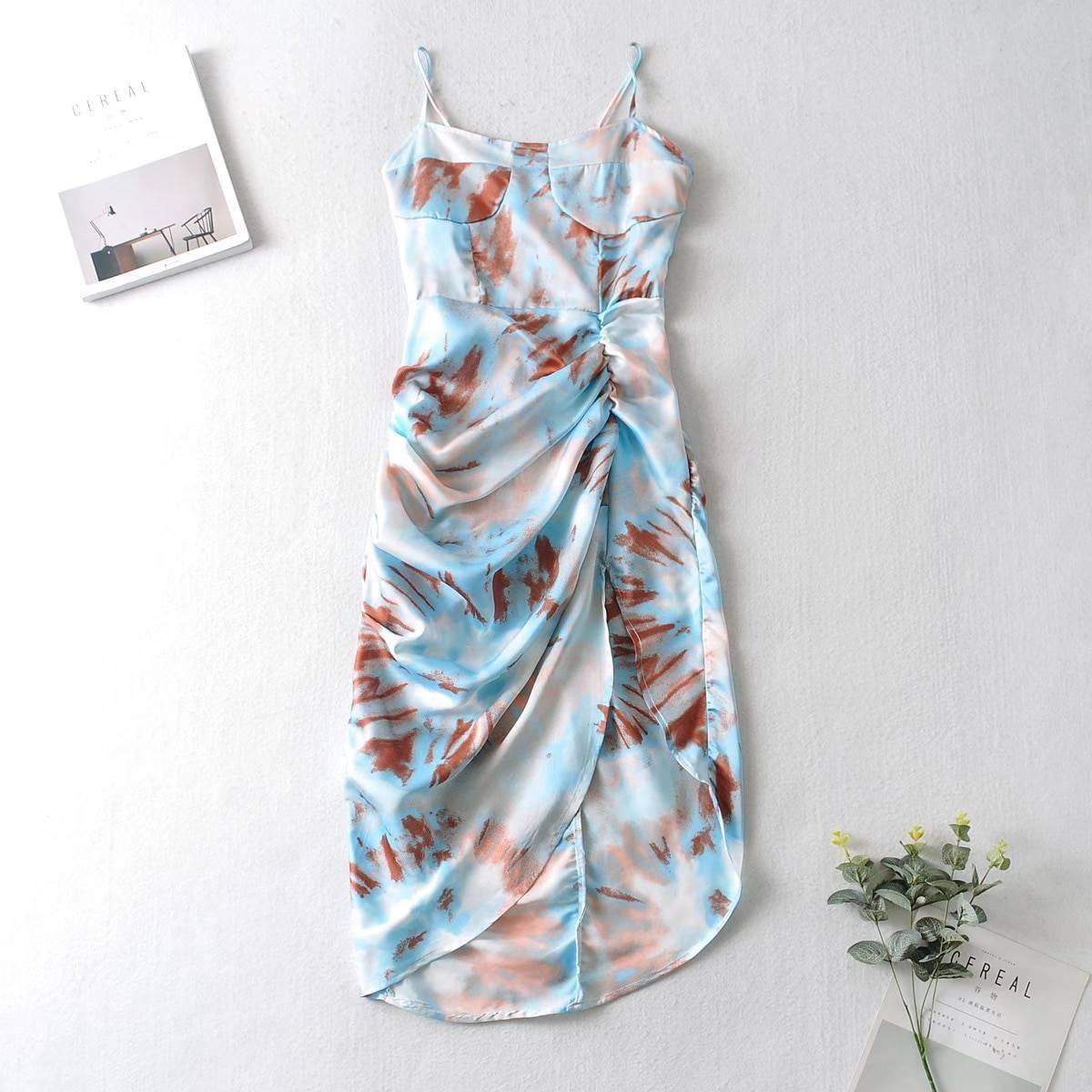 FREE SHIPPING Vintage Long Dress Tie dye Flower Print OUT0866