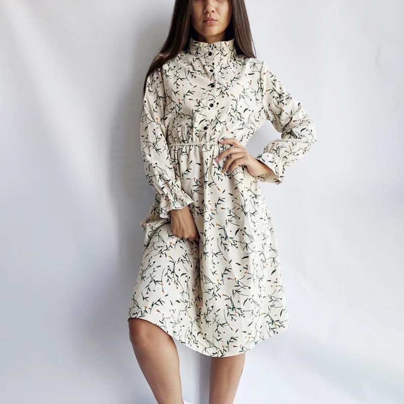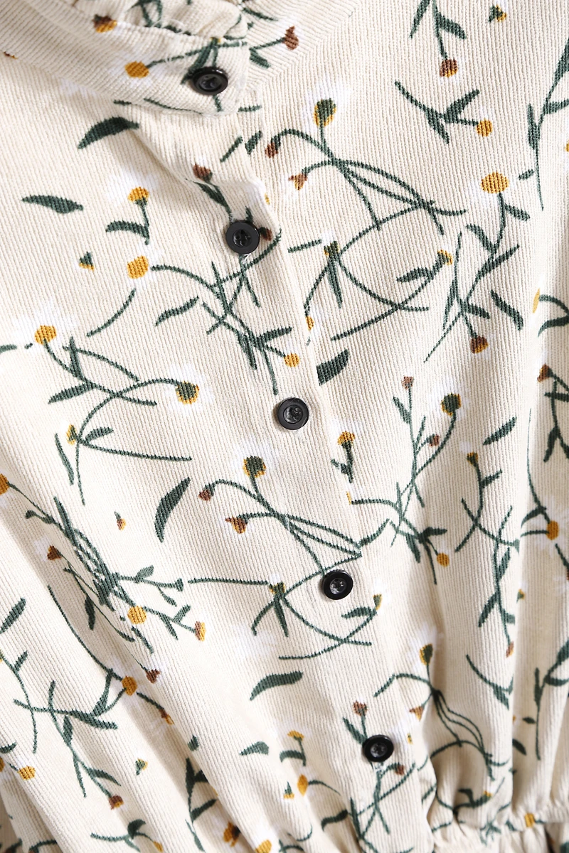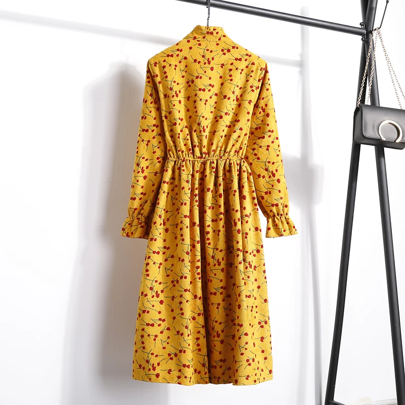 FREE SHIPPING Winter Dress Corduroy Soft Floral Print