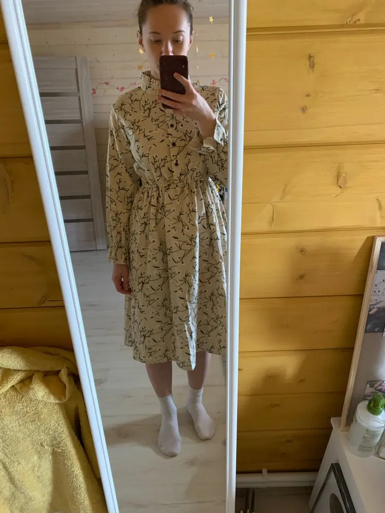 Very healthy dress! Threads do not stick out, as a gift put rubber) very dense fabric, probably better to wear it in autumn.