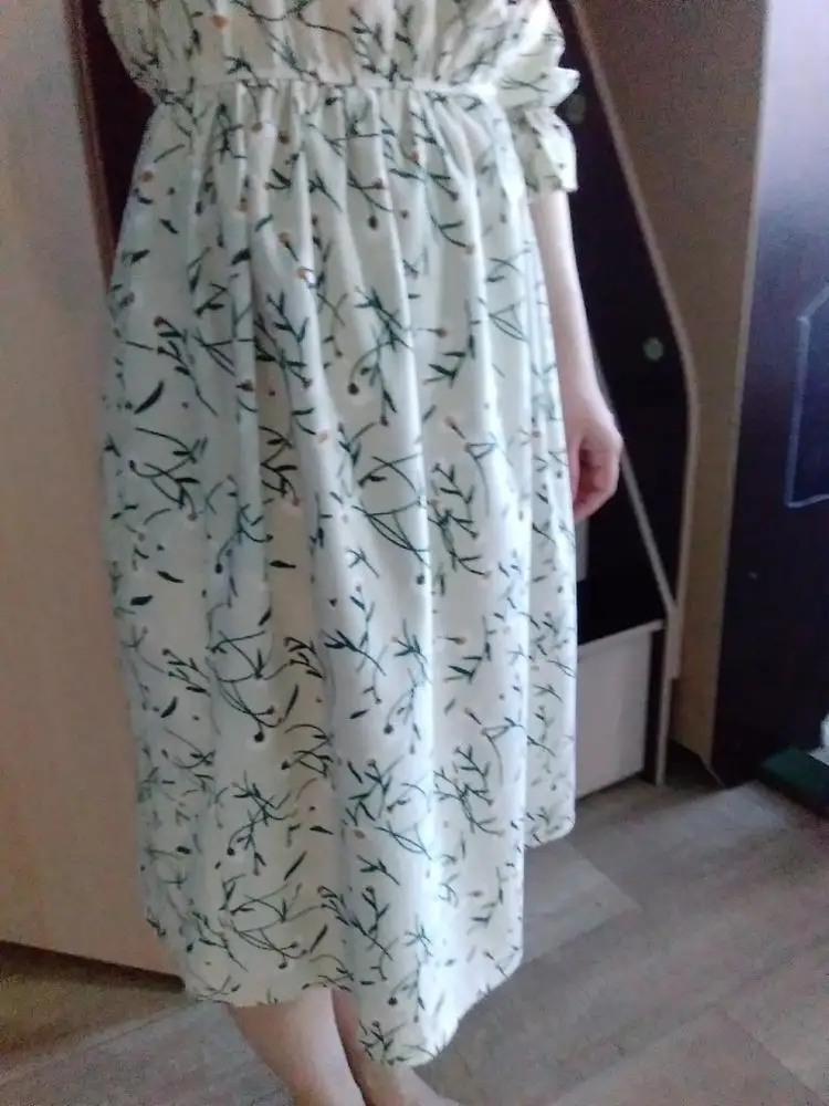 Great Dress! only a little sleeves are cropped, but still looks beautiful) still store sent the rubber band as a gift) thank you) also the parcel came very quickly)