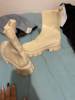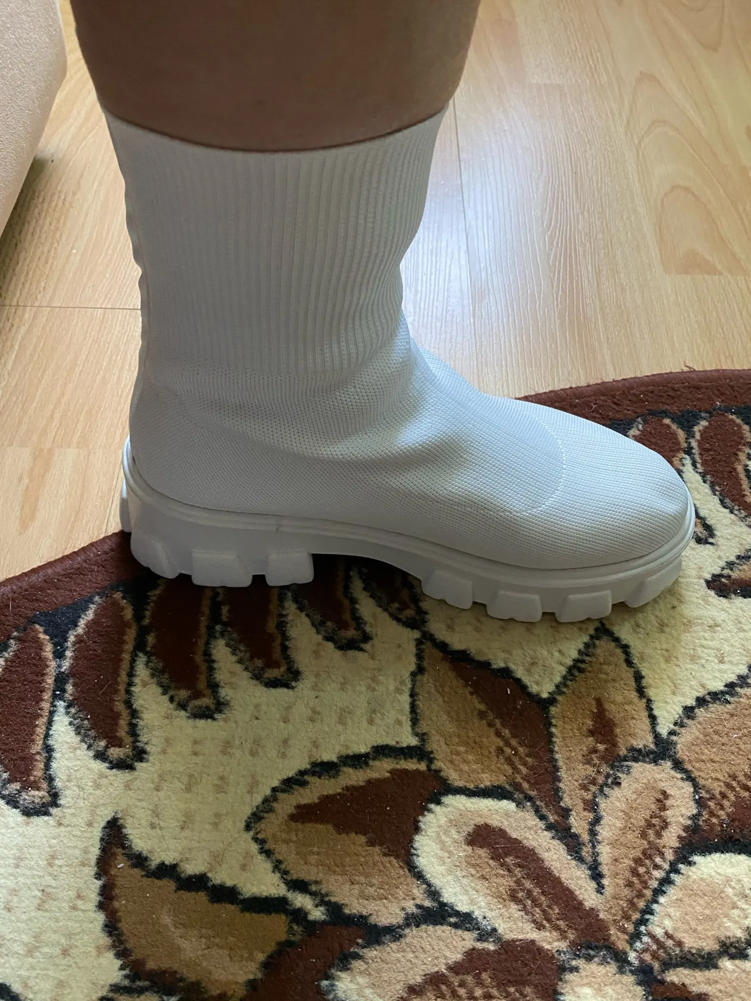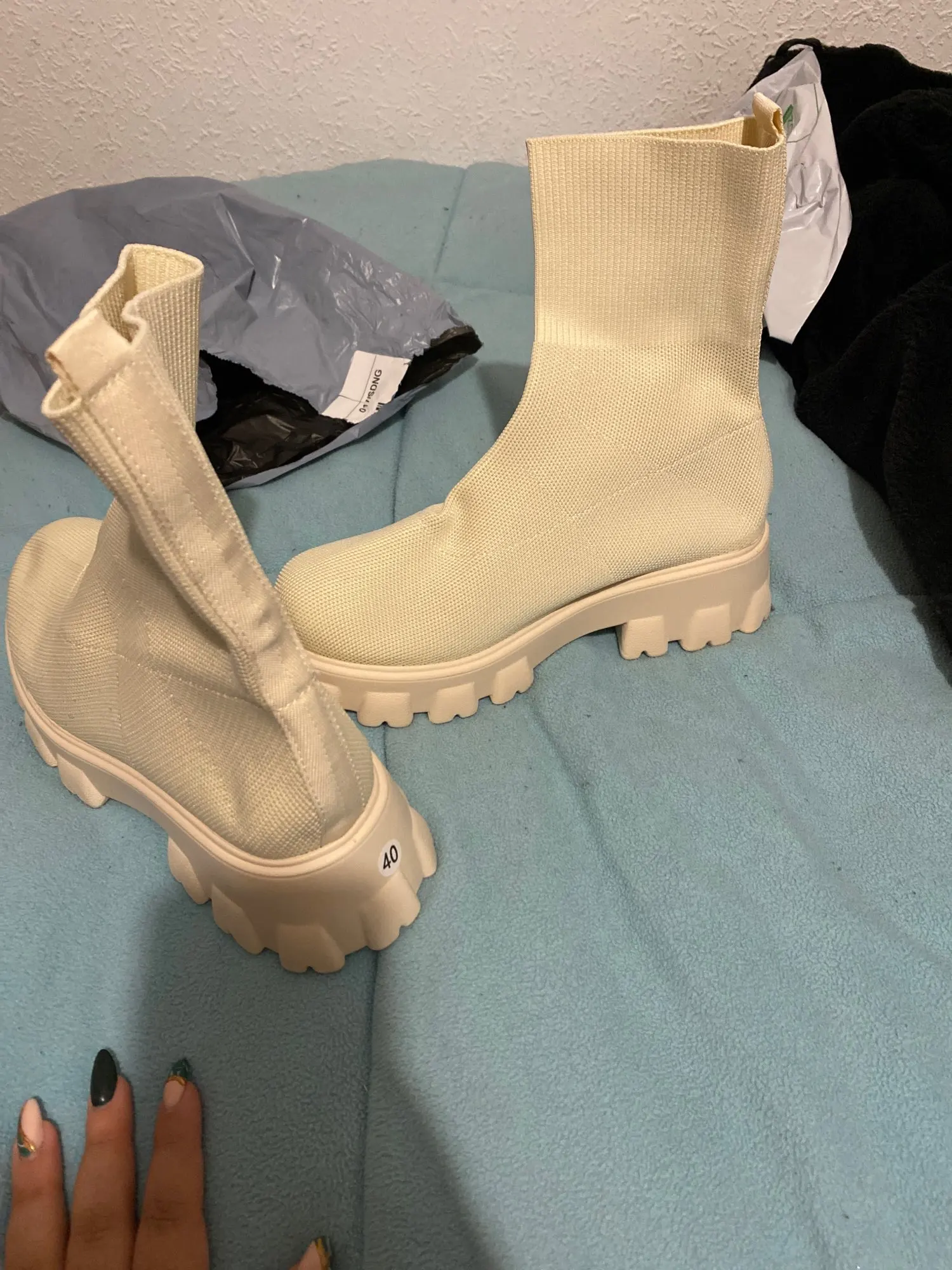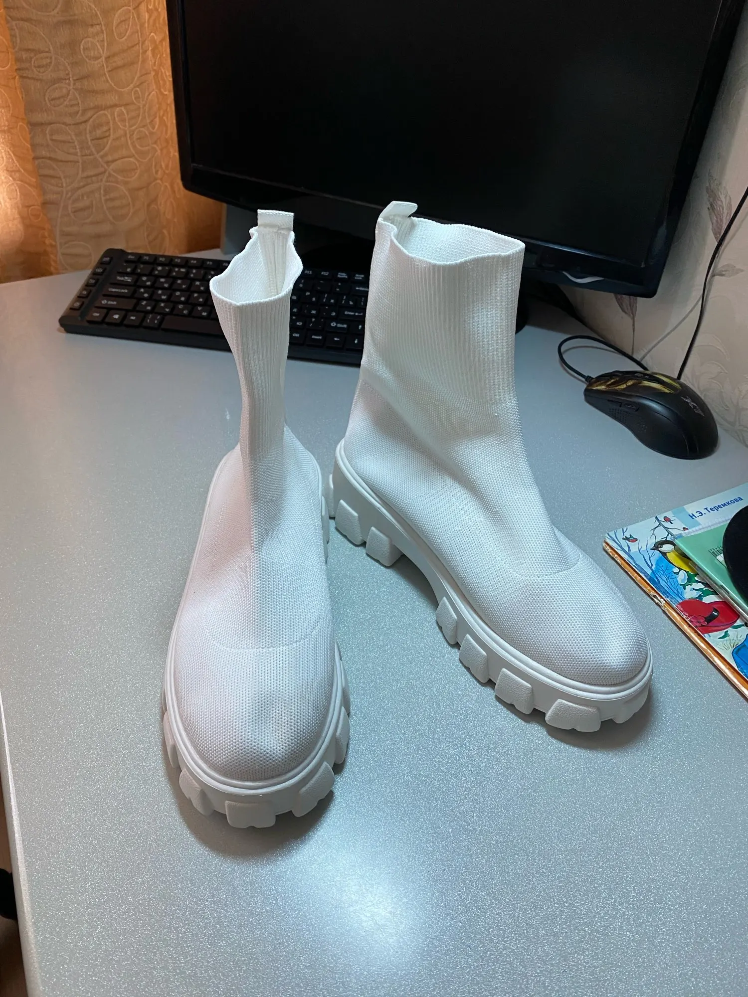 Excellent autumn-spring boots, as in the picture))) expectations were met. Beautiful White) It is convenient that fabric, White quickly get dirty and I wash them in a washing machine and they dry quickly. Delivery to Kiev came very quickly. Only 3 weeks!!! My foot size is 37. The length of the foot is 24 cm. Plus, the width is not narrow, with a bone sticking out. Given this, I took 38 size. It's with a toe. Guessed with the size. Stylish and feminine boots. Recommend.