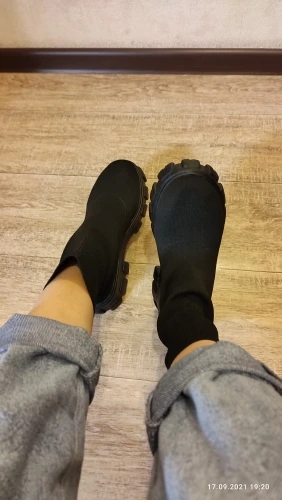 Not delighted. Shoes came with stains, deformed. Sole with marriage. 5 stars just because the store asked not to lower the rating. And returned 200 rubles)) one shoe is less felt. Your finger rests. Keep in mind that on the edge of the "socks" is stronger, do not stretch, not as soft as the bootleg. Sole of foam, let's see how much enough)) their money is not worth. But it's up to you to take it or not. I took on the size grid of the seller 39 size per foot 24,5. On a wide leg fit.