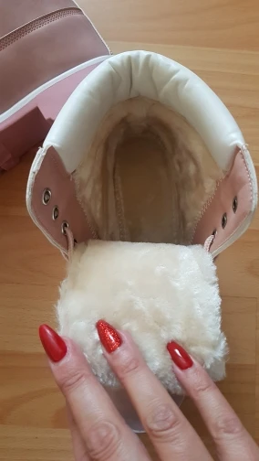 Very nice shoes all stuffed inside and a pretty pink with good soles crampons for the snow well high to hold the ankle
