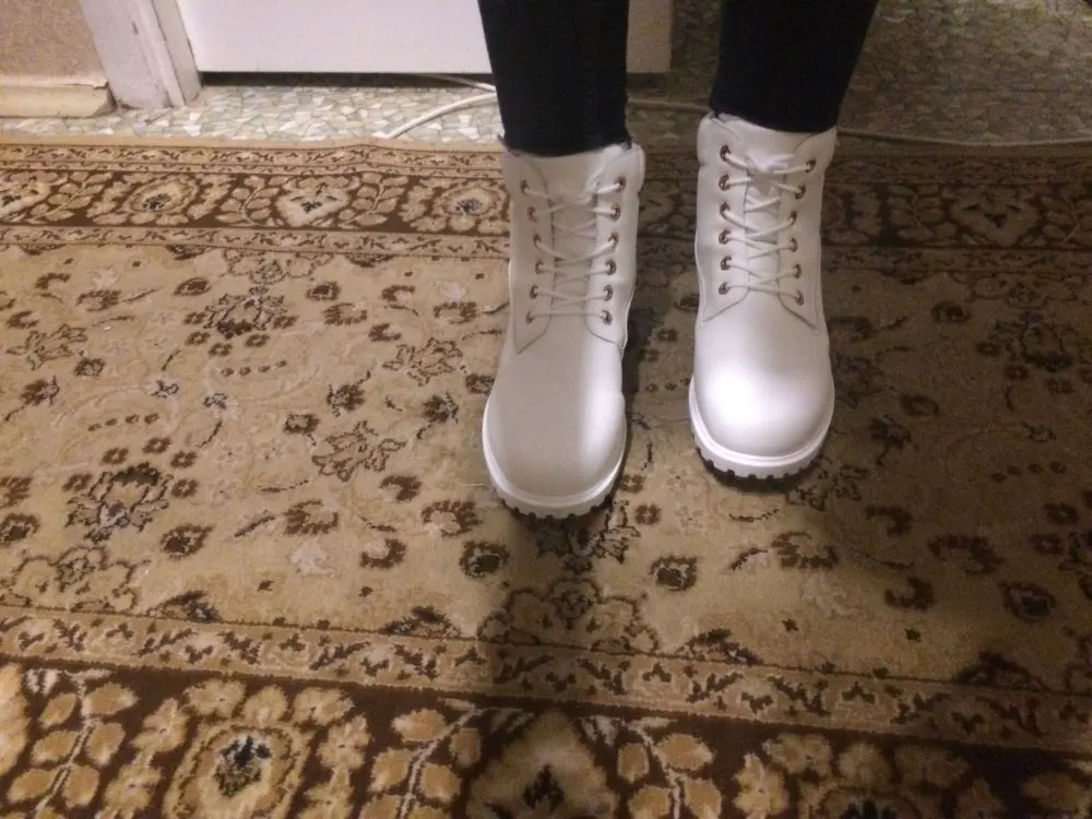Pretty precise description. At size 38 ordered 7,5, turned out to be very free, but the insole or warm sock will fix everything, not critical. It also seemed to me that they are a little higher than in the photo. Otherwise, I'm happy with everything, look great. Delivery is very fast-18 days to Ukraine, sent to a new post office. But the way the package was packed-I did not like it. They were just put in a bag of black and rewound with tape. inside the boot was a bag of air, but it did not help, one boot was wrinkled from the side, and I do not know how to fix it.