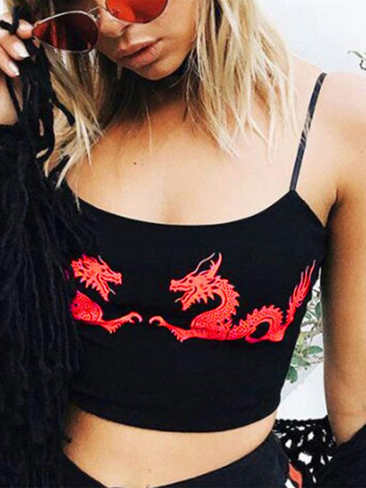 FREE SHIPPING Women Casual Dragon Pattern Crop Tops OUT1077