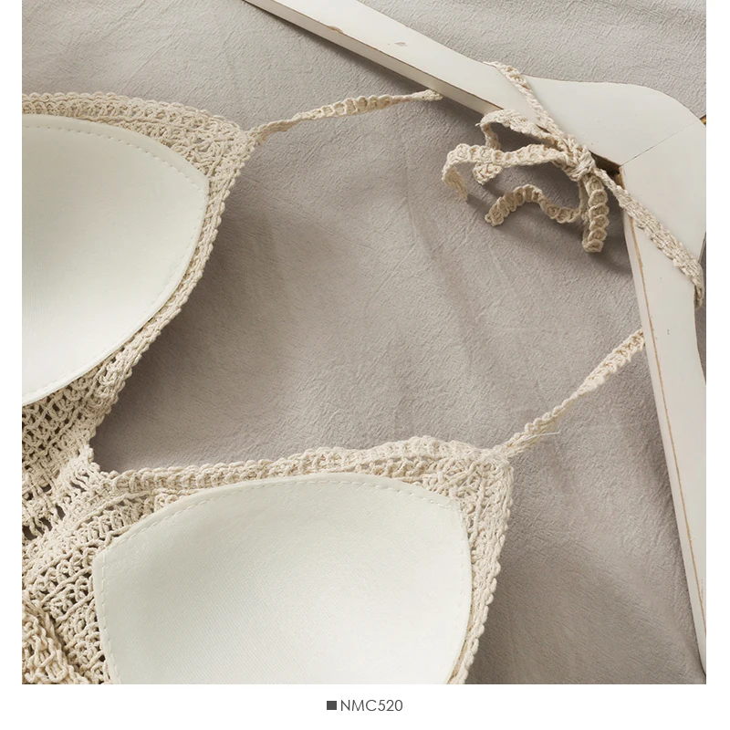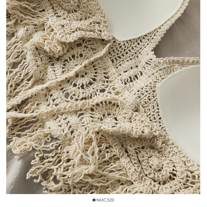 FREE SHIPPING Women Crop Tops Built In Bra Back Lace Halter Neck Retro Tassel Spaghetti Strap OUT0994