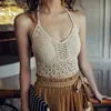 FREE SHIPPING Women Crop Tops Built In Bra Back Lace Halter Neck Retro Tassel Spaghetti Strap OUT0994