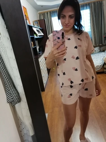 Cotton, pleasant pajamas. T-shirt is really huge, but in a smaller size shorts could be very covered. During socks, the shorts stretch a little, maybe it was M. Sleep comfortably.