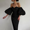 FREE SHIPPING Women Elegant Bardot Black Strawberry Dress OUT0908