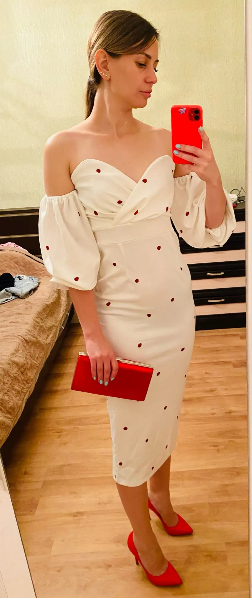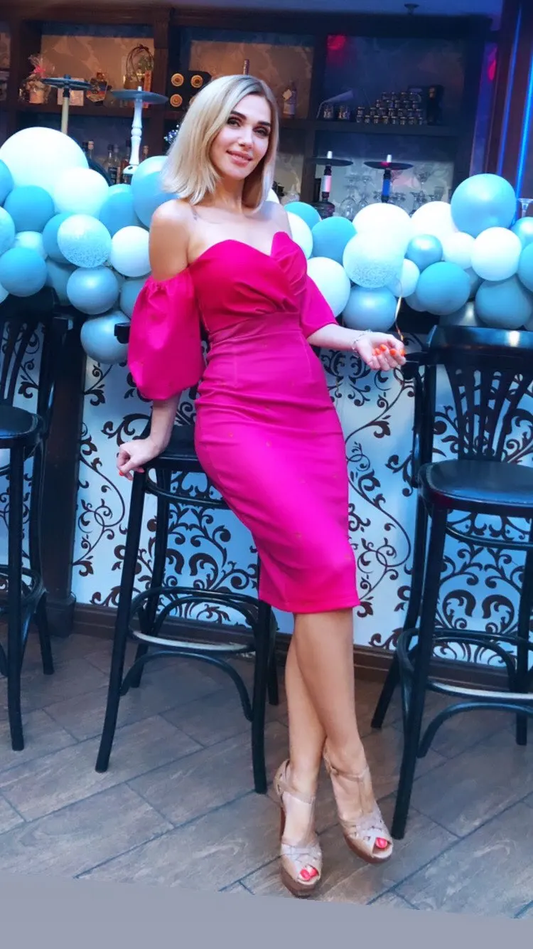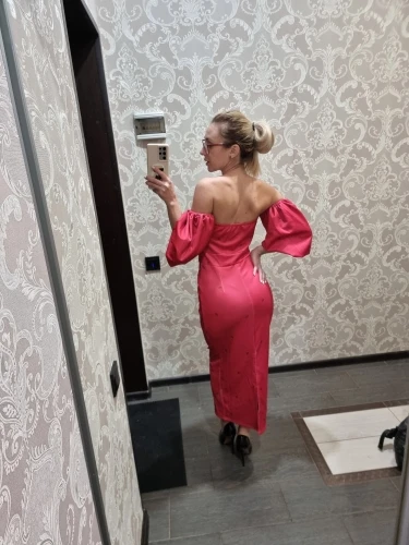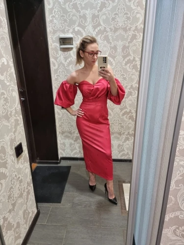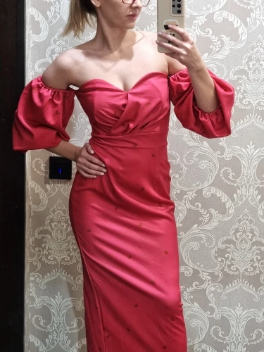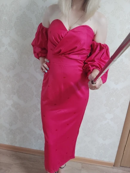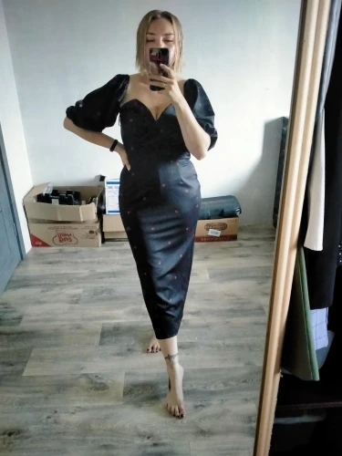 I ordered a dress and clutch 16.07, the goods came in a single parcel of 30.07. If you order 2 or more things, then the goods come faster. Description exact. Tight stretch, stretches well, does not shine through. OG 82. Of course there would be a bigger chest, it would look more beautiful. Fix the bodice. I'm happy with the purchase. My back's open. I did not communicate with the store.