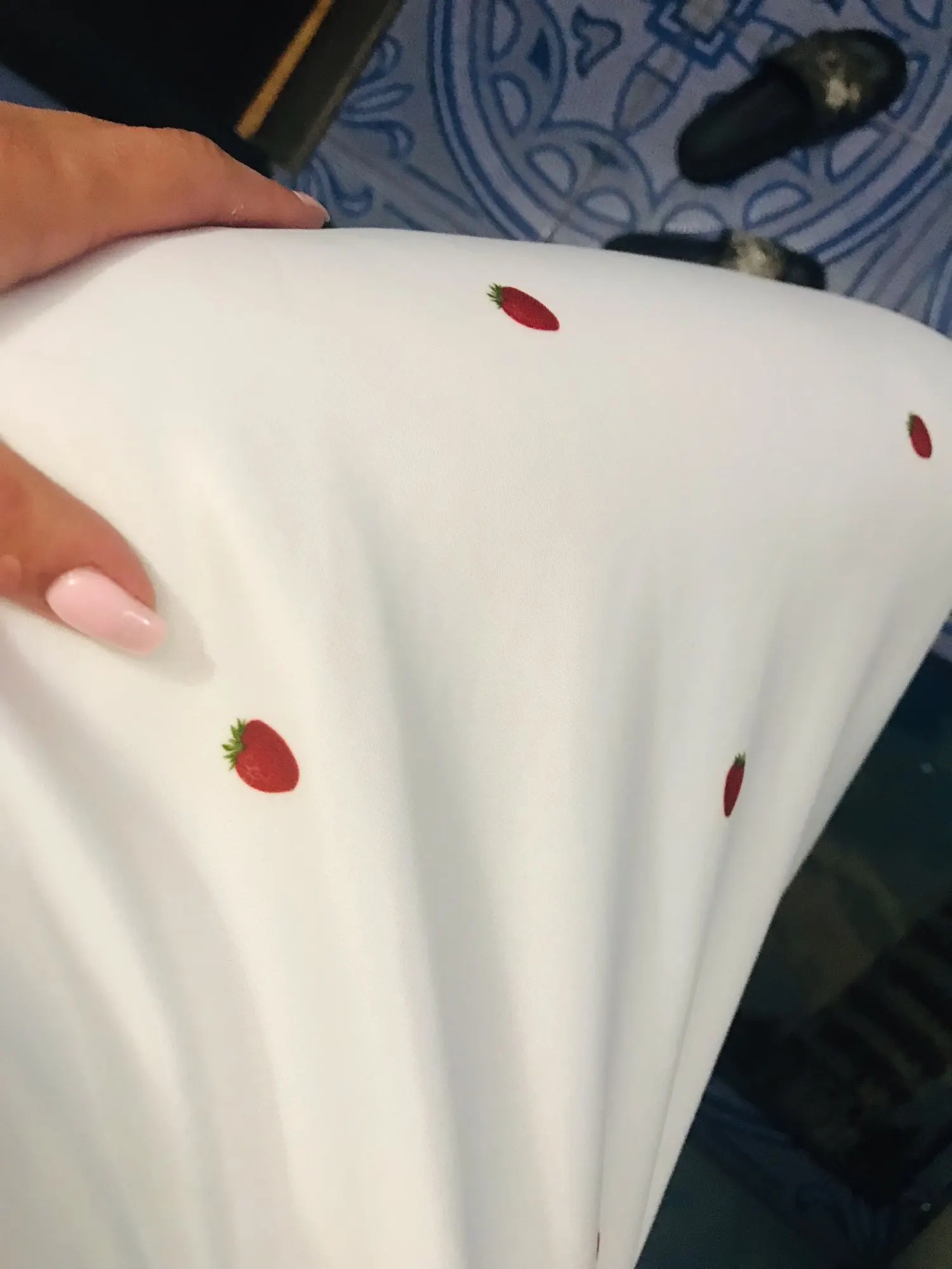 Nice dress but low quality fabric. It may not be visible in the picture but the dress arrived with some white stains as though the fabric was over stretched or over washed. It is a thick Lycra stretchy fabric. I thought it would be satin. The dress arrived very fast.