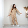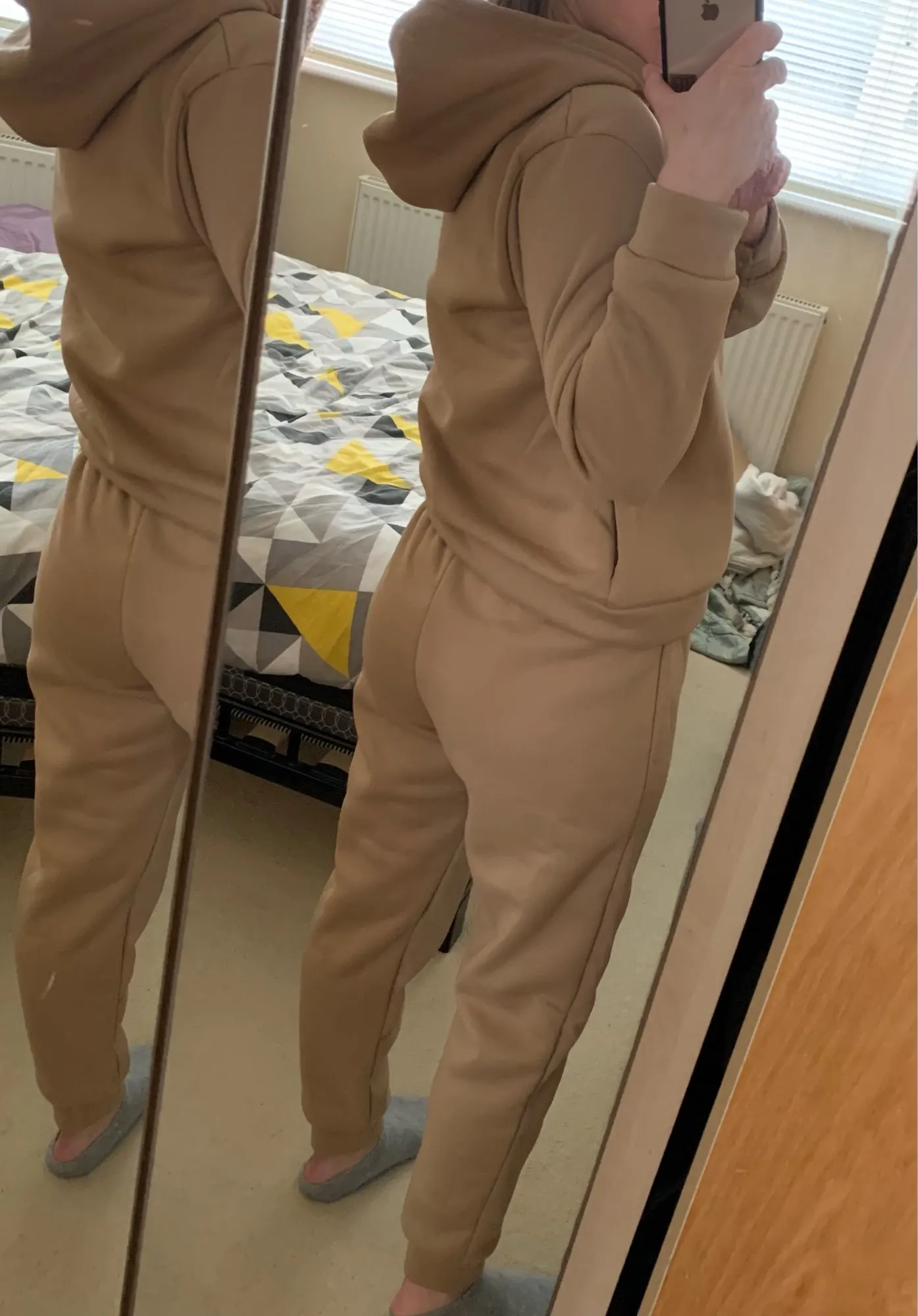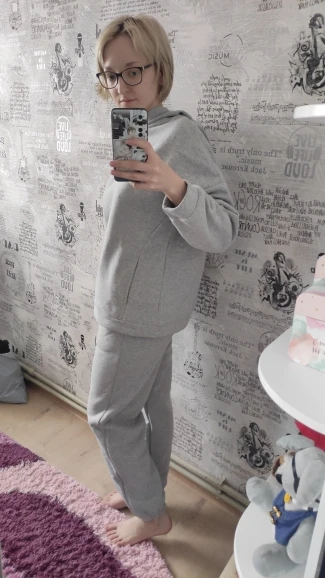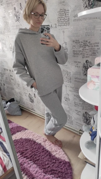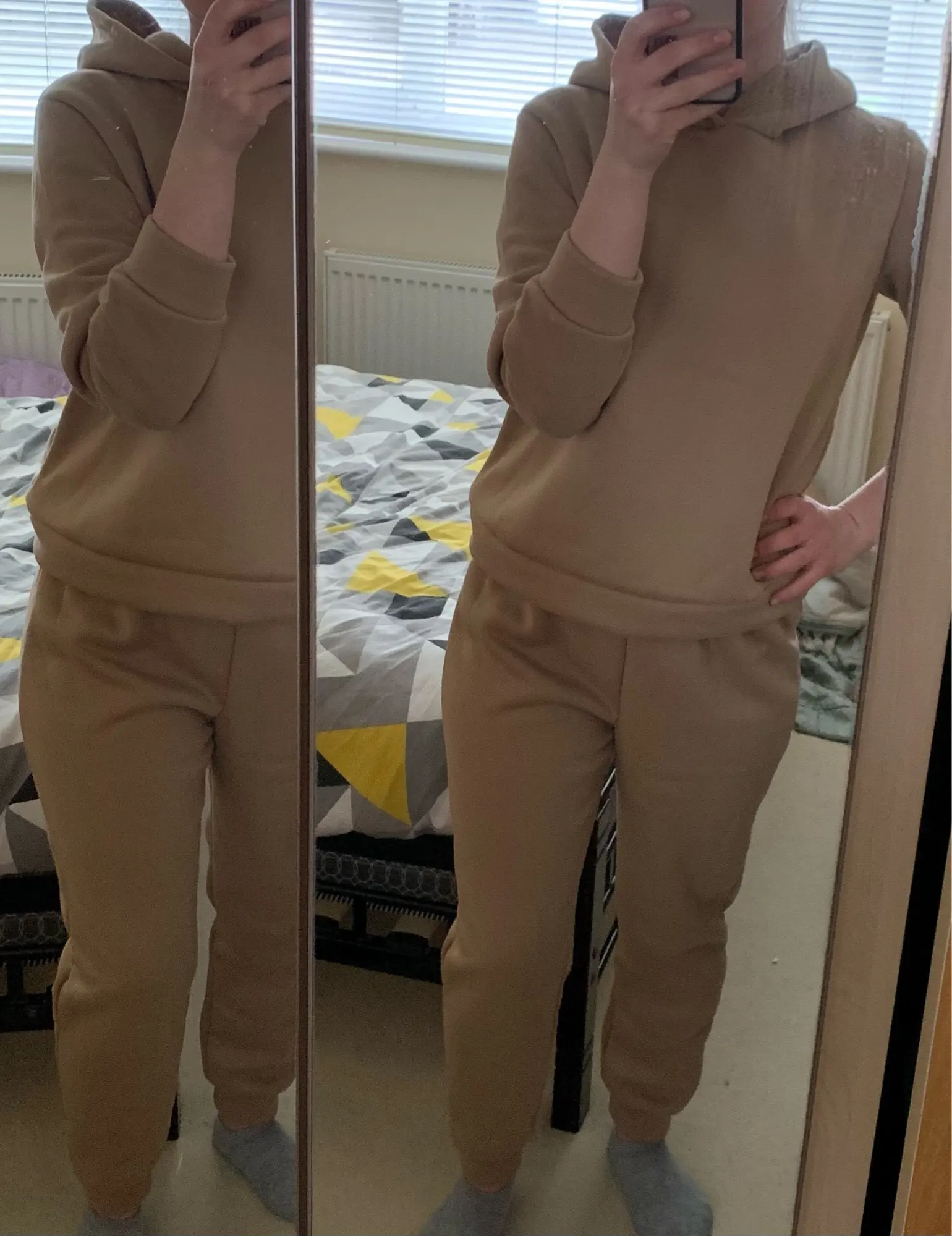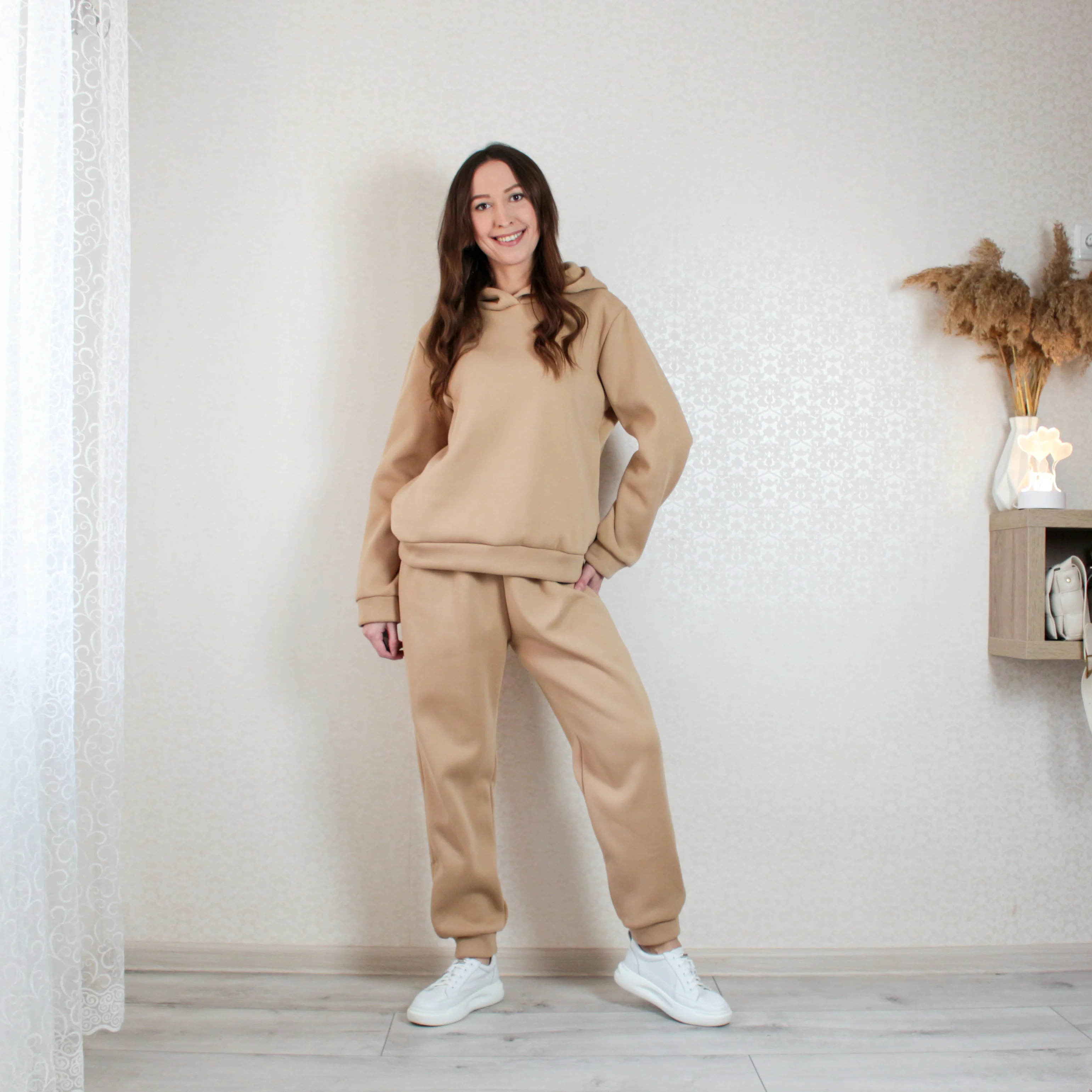 Insta milka_pon Very cool suit! The fabric is unexpectedly pleasant, looks great, it's cotton on fleece. The shade of coffee was more beige or even mustard, but still looks beautiful in life. Full base. It's nice that the costume is not small. I ordered M for parameters 89-67-92, height 168 cm, the suit almost perfectly approached me. Pleased that the length of the pants is chic (even for growth about 170 will be norms). But I'm very free at the waist, the elastic band is loose. It would be better to fit the size s.
