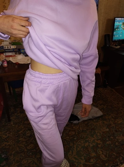 Спортивный костюм на флисе Делаешь сотню фоток - они оказываются размытыми Поэтому рассмотреть особо нечего, но кого заинтересовал костюм - на следующей неделе покажу его в прямом эфире на АлиЭкспресс Ссылкой поделюсь со всеми желающими. Доставка в Украину заняла месяц. Всё было отлично упаковано. Пошив тоже хороший. НО брюки очень широки в талии. Мне придется даже их как-то ушивать, поскольку на мне они практически не держатся. Размер S. Что касается худи, то оно классное. Теплое, мягкое. Карман большой и удобный. Капюшон слегка маловат. Если надеть на голову, то вся толстовка подскакивает. Пожалуй это единственный недостаток, за такую стоимость товара. Расцветок множество. На параметры 83-62-90/161/52 взяла с-ку. Длина на мой рост хорошая. На девушек выше 165 см - лучше брать на размер больше. К покупке рекомендую